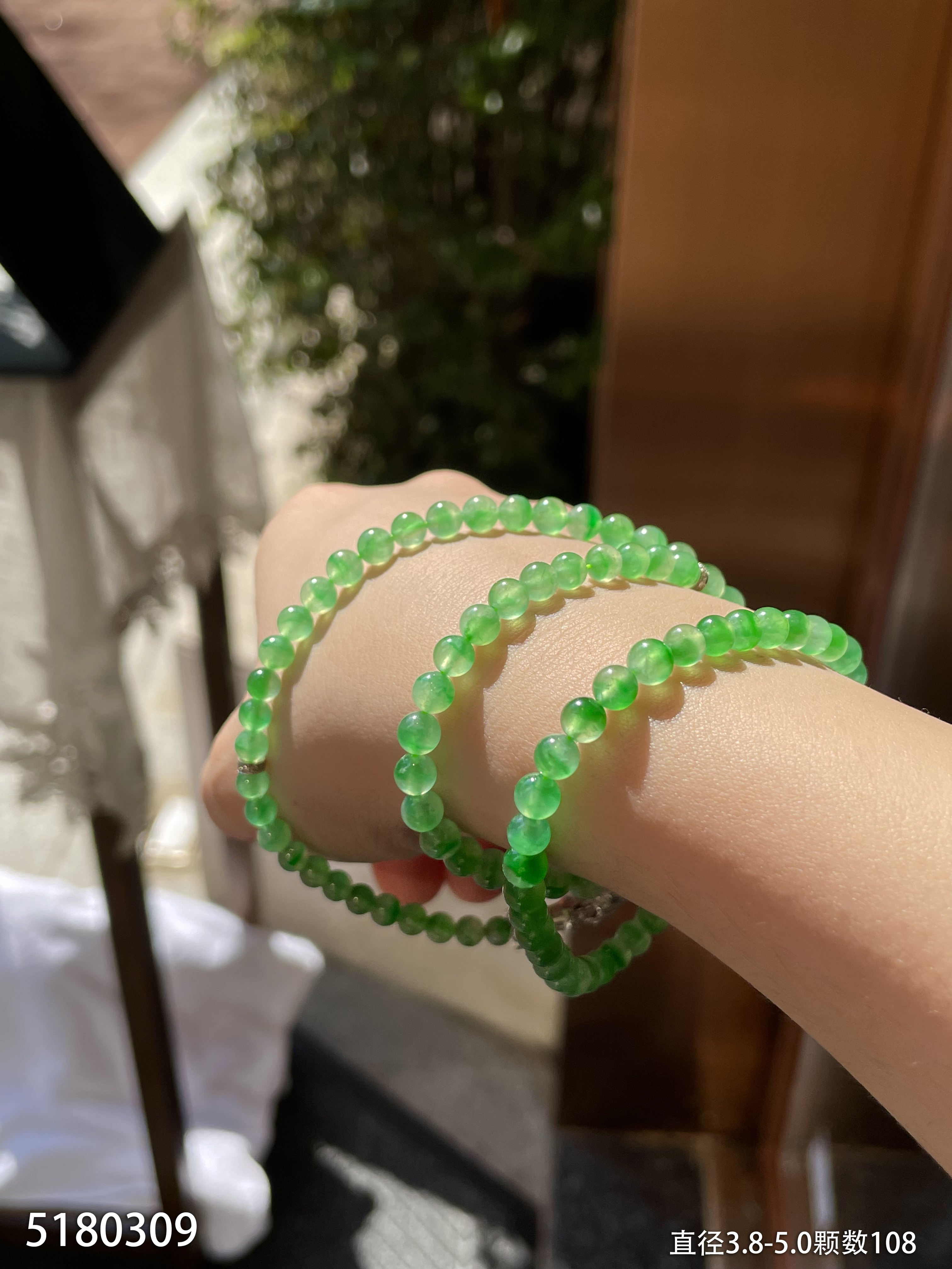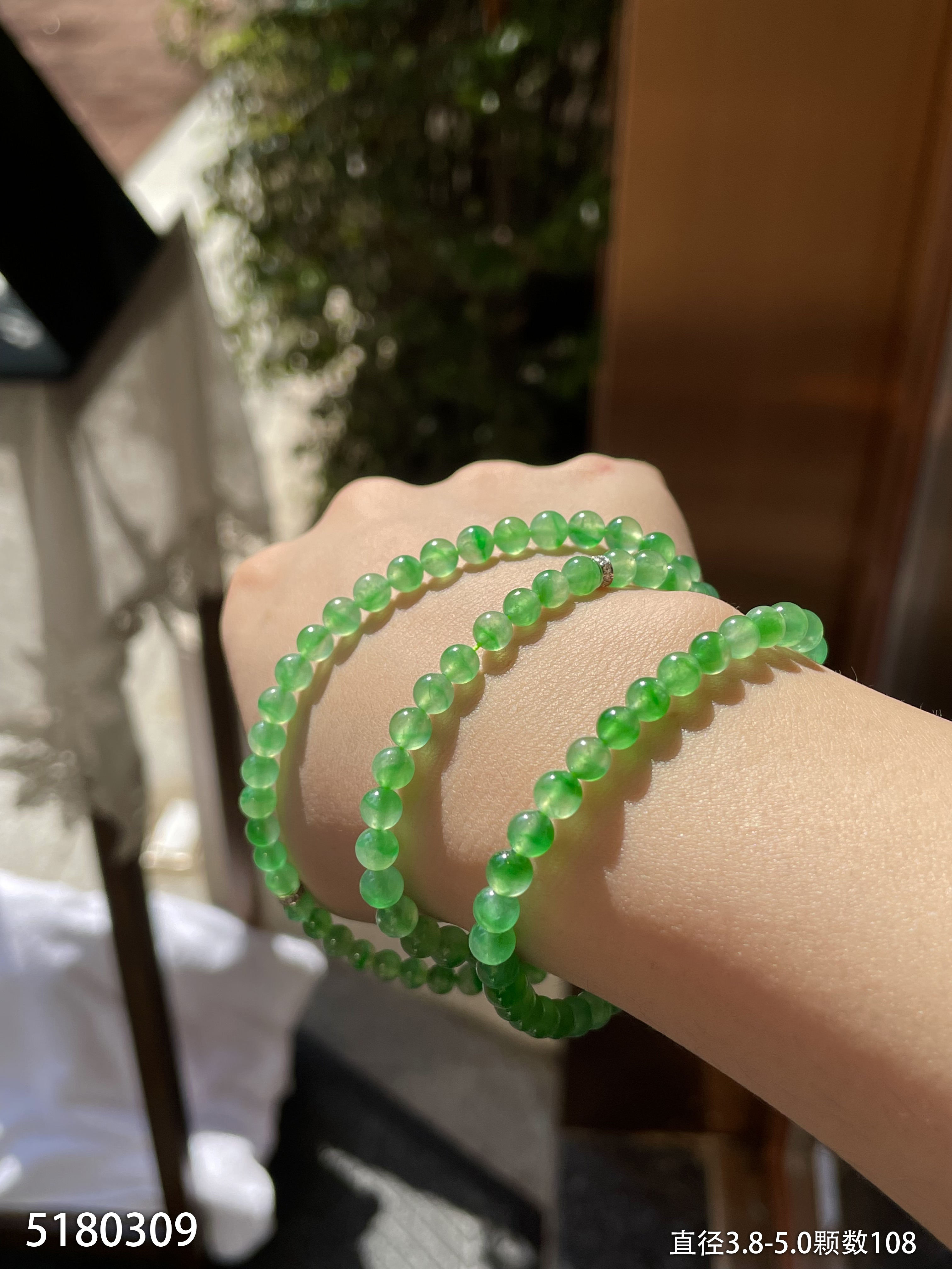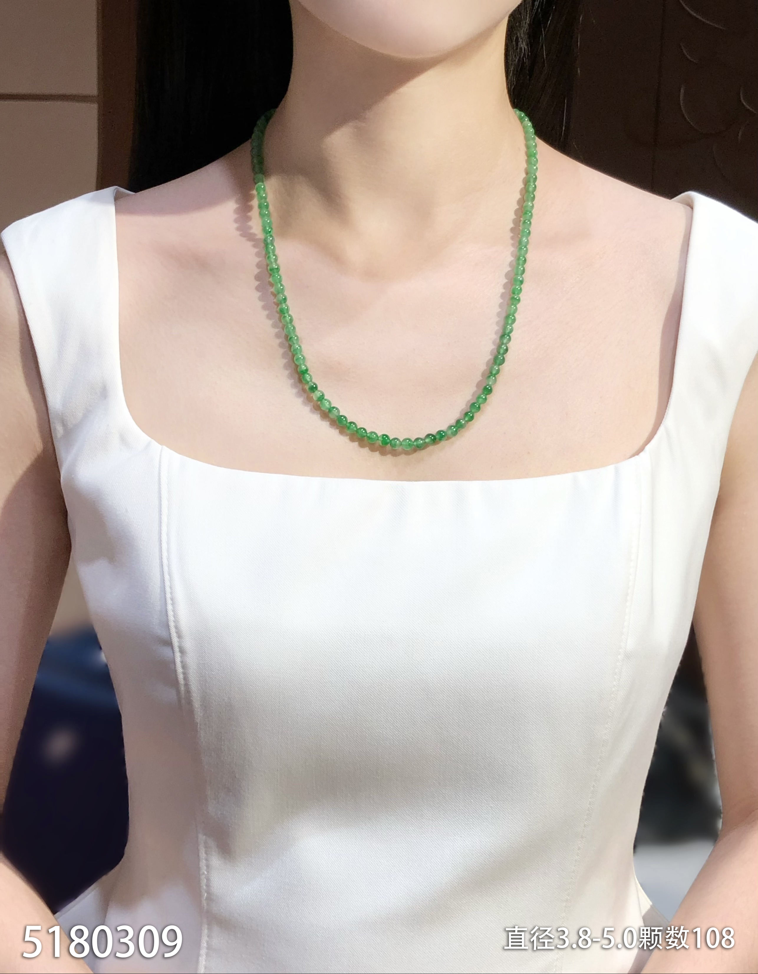 玻璃种阳艳绿珠子链【5180309】具体价格微信咨询