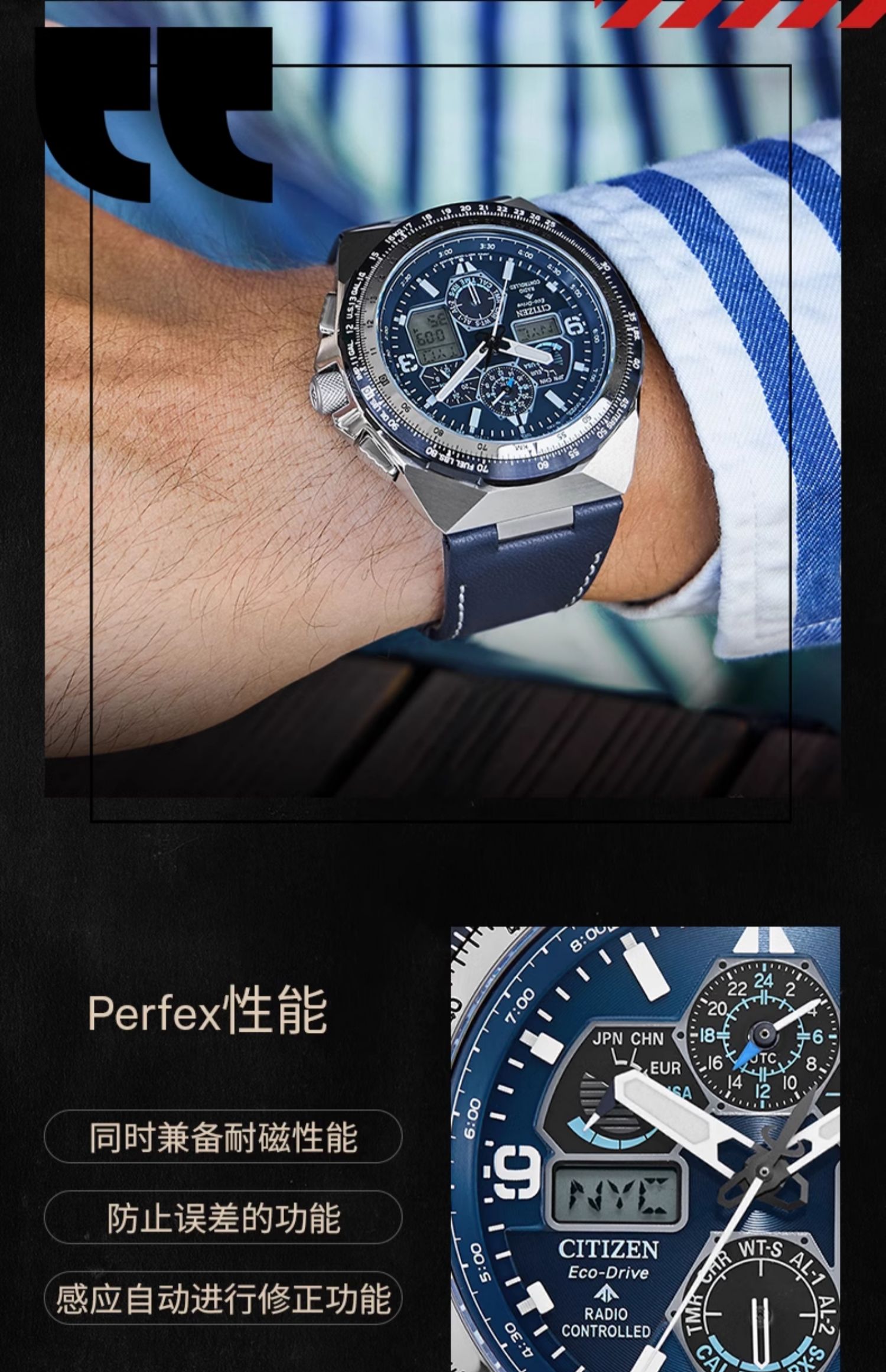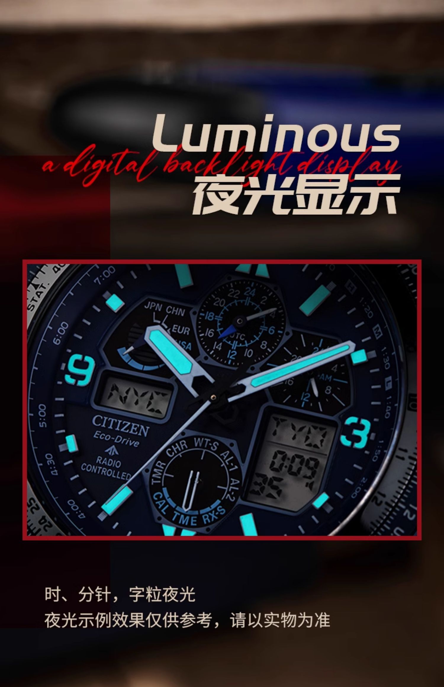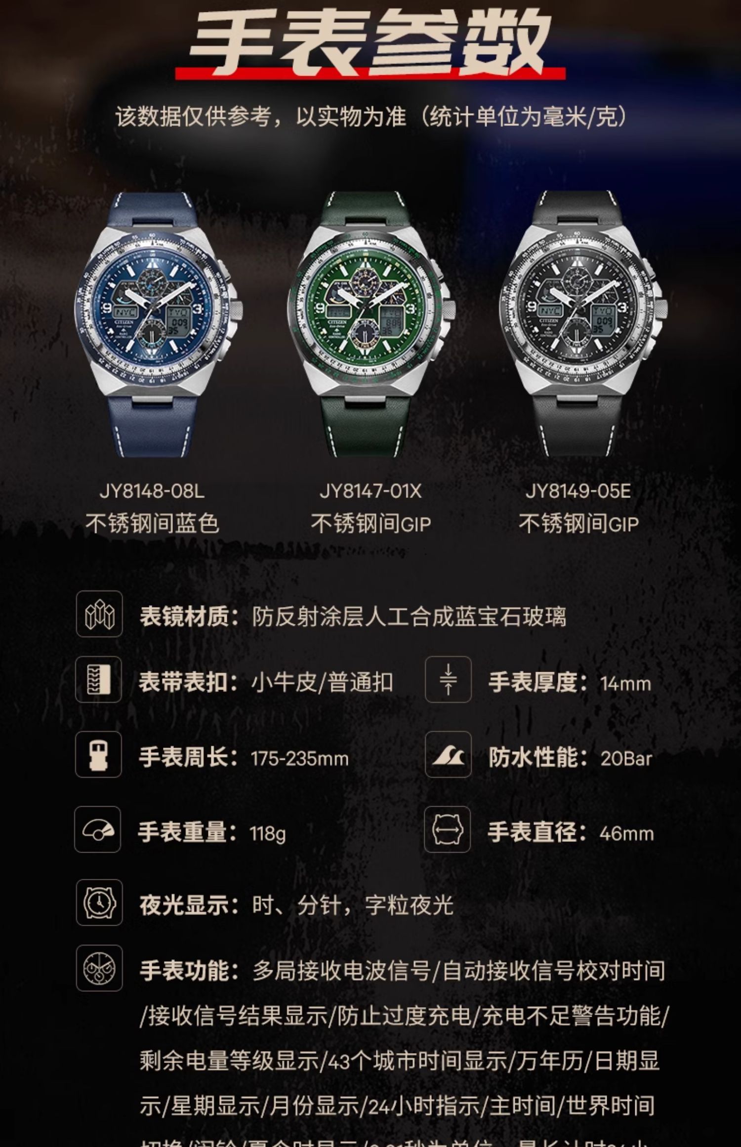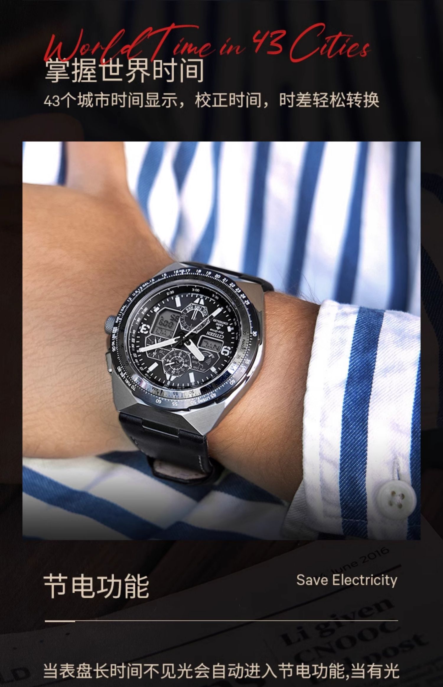 西铁城/CITIZEN光动能PROMASTER系列运动航空计时男表JY8148-08L