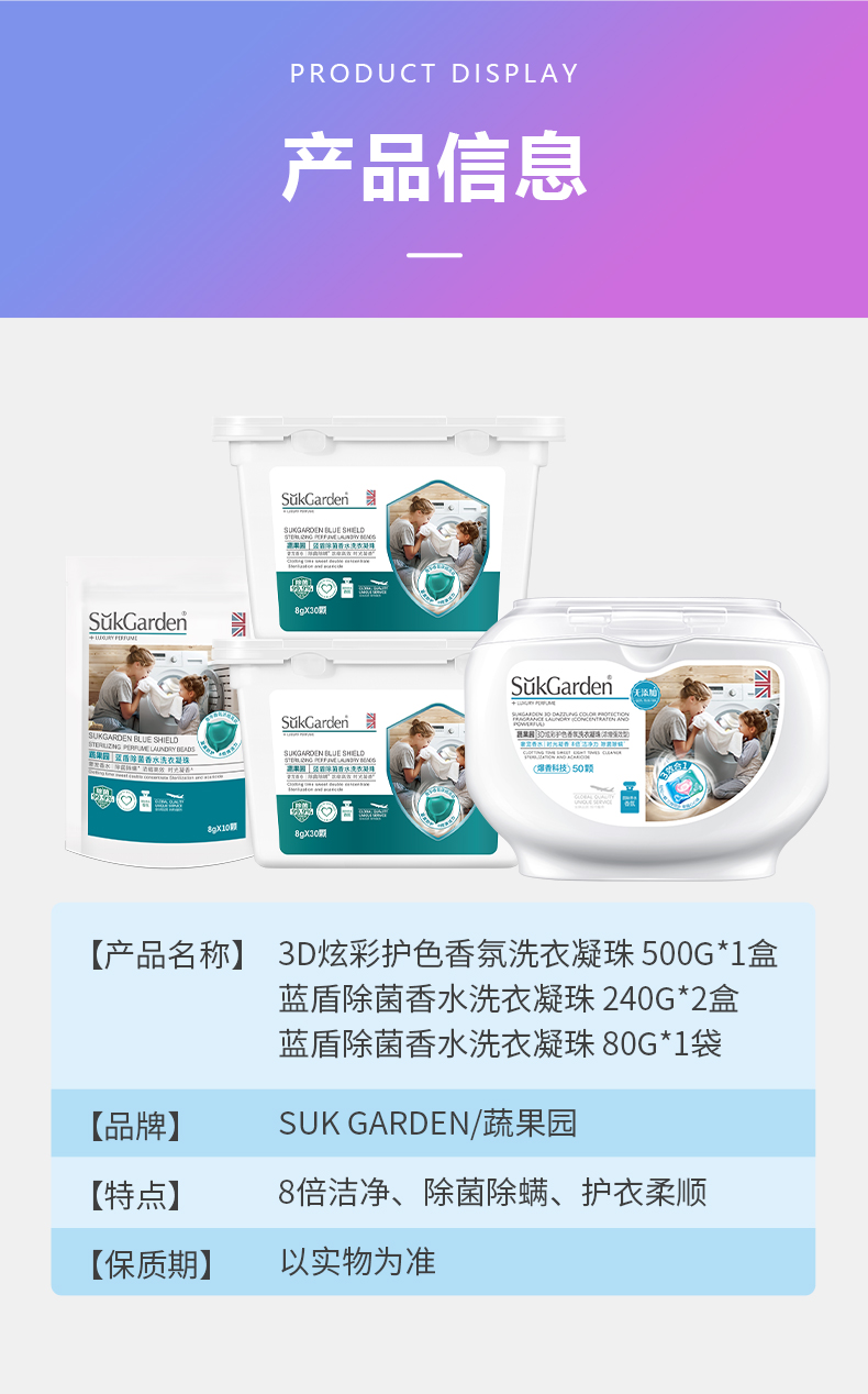 蔬果园3D洗衣凝珠(浓缩强效型)-10g*50颗*1盒+蔬果园蓝盾蓝风铃香水洗衣凝珠-8g*30颗*2盒+蔬果园蓝盾蓝风铃香水洗衣凝珠-8g*10颗(袋装)*1袋