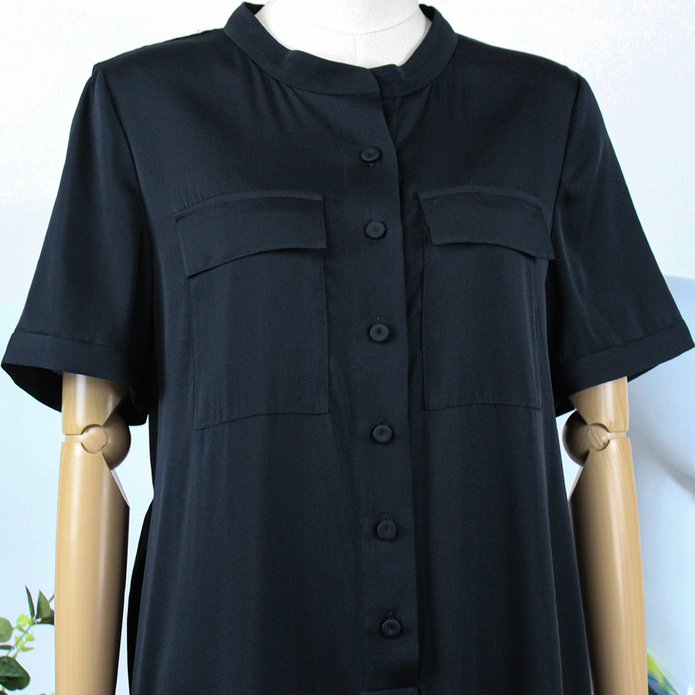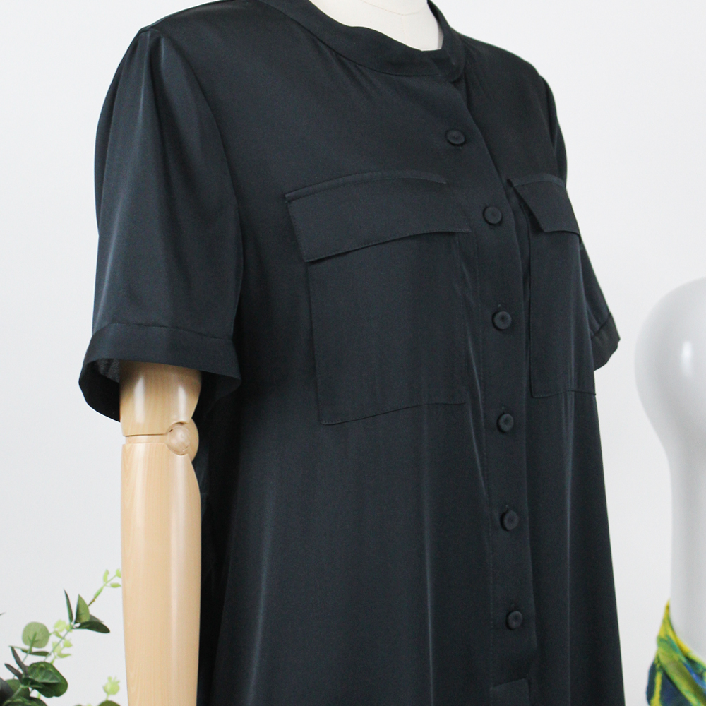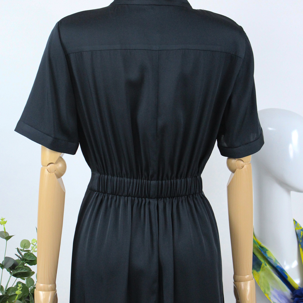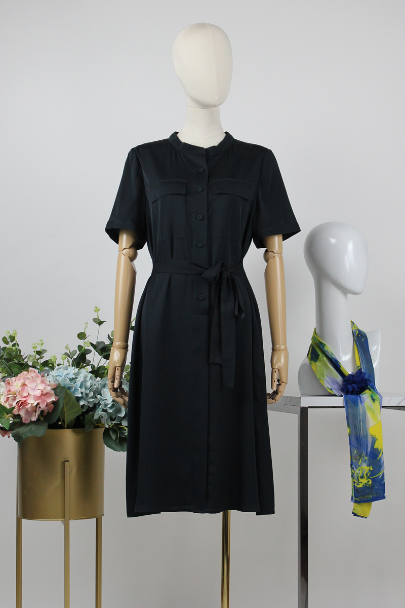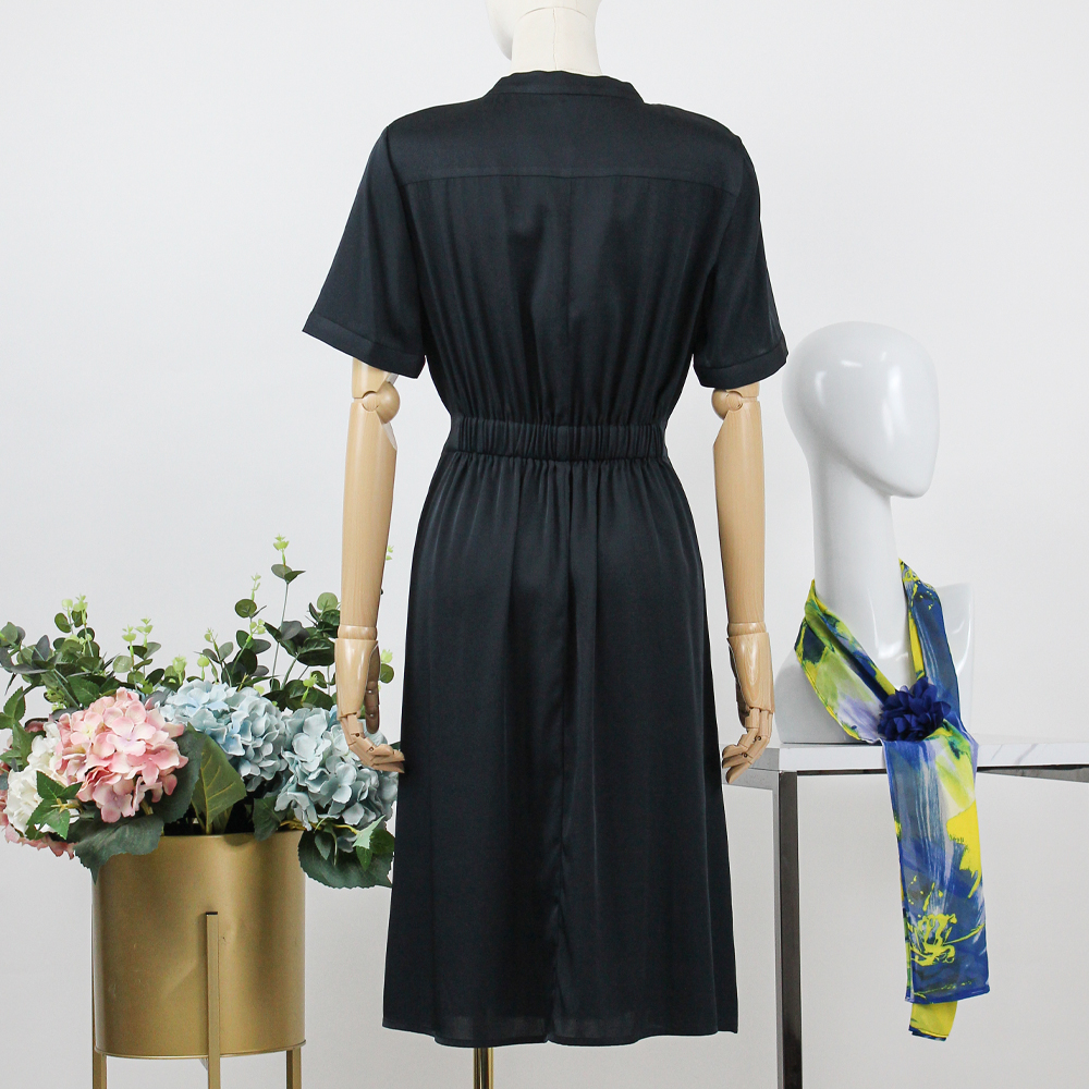 FOCALS福柯斯女装夏季新款桑蚕丝半袖休闲风纯色连衣裙F2YBX327GN