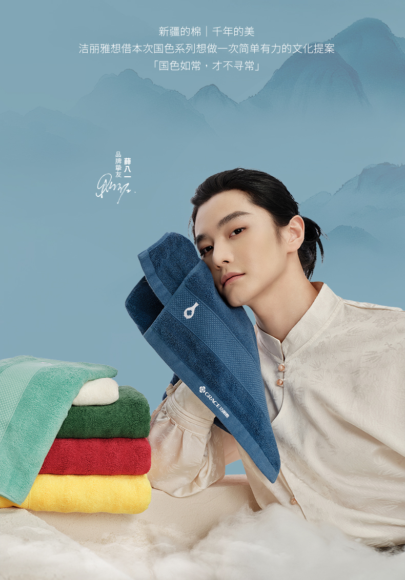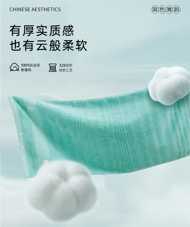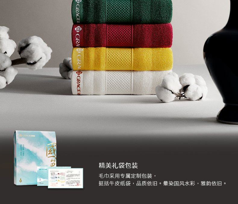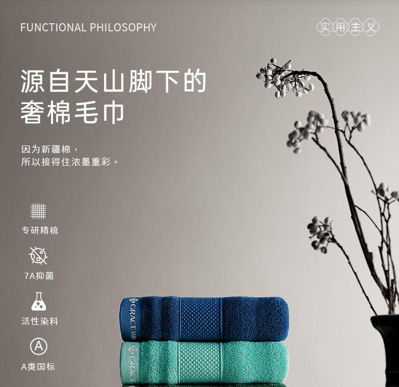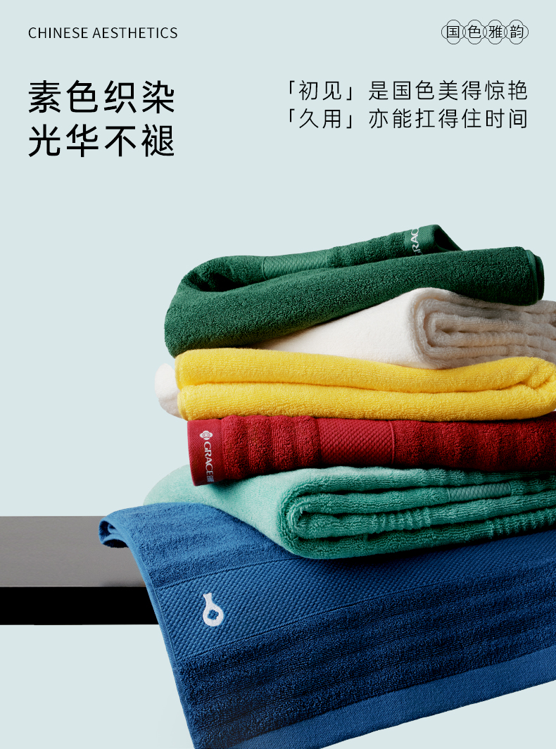 洁丽雅国色7A抑菌弦纹款纯棉毛巾组合家用吸水加厚舒适#自在熊猫