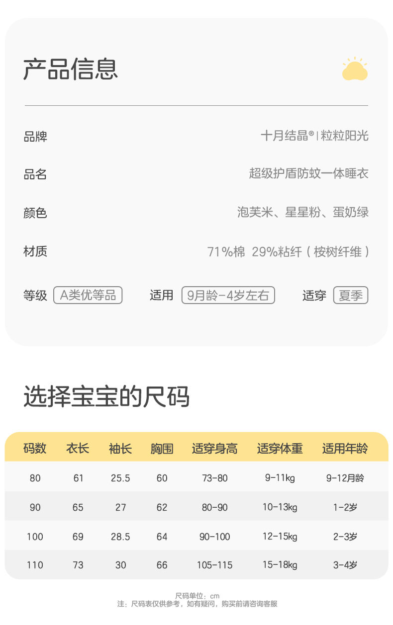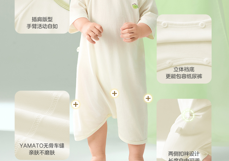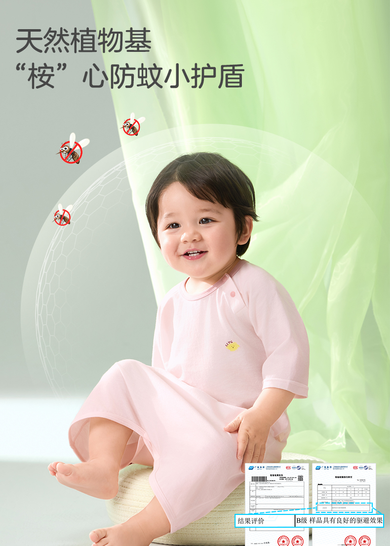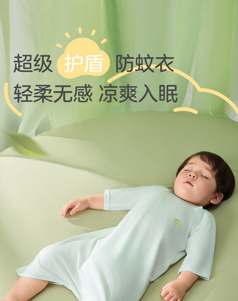 粒粒阳光宝宝睡衣连体衣夏季婴儿凉感连体衣防蚊一体睡衣
