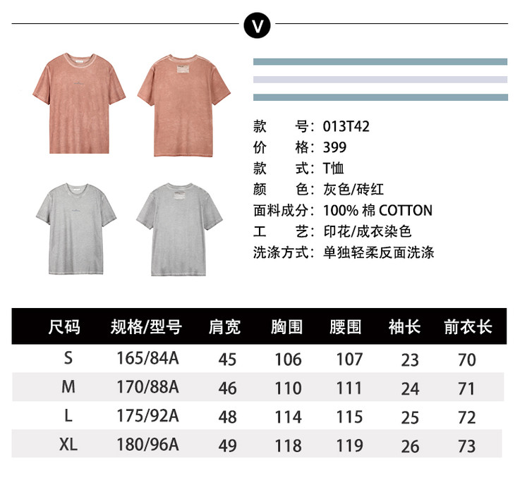 NINEWAY九平道 013T42 高街炒花色水洗做旧男短T恤工装半袖