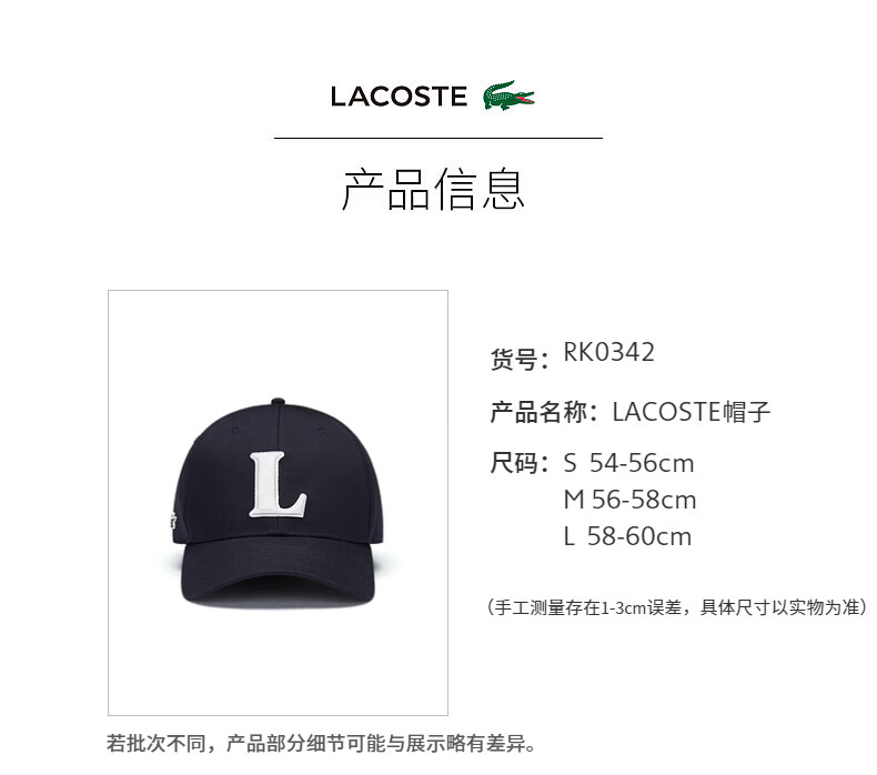 【海南专供价】Lacoste春夏帽子RK0342-98