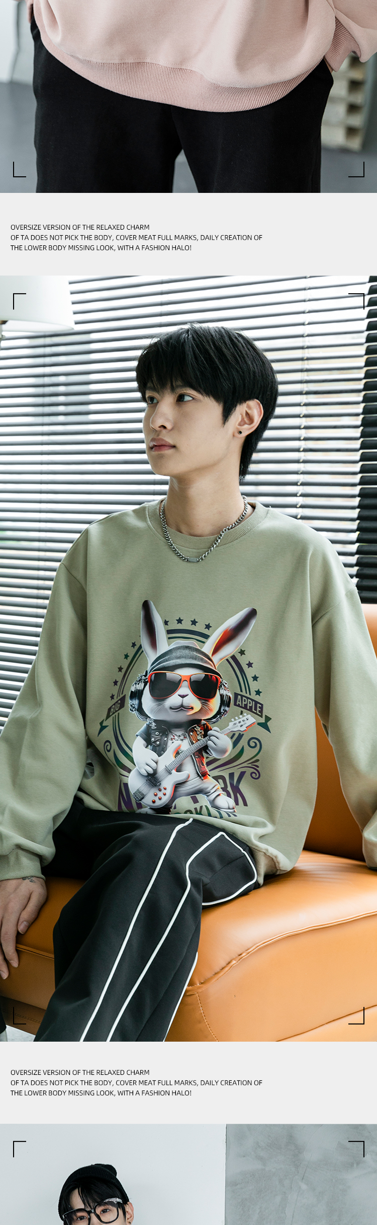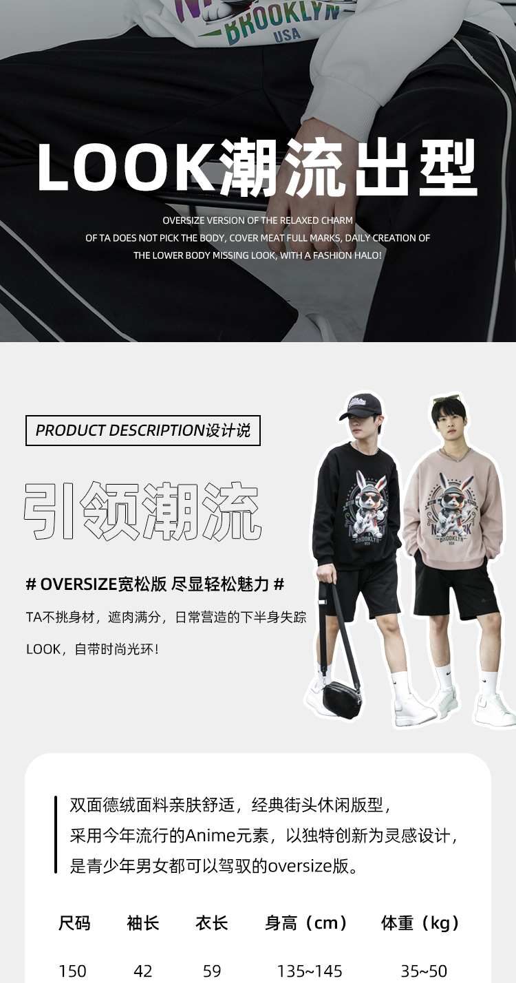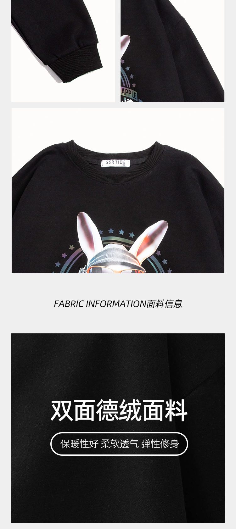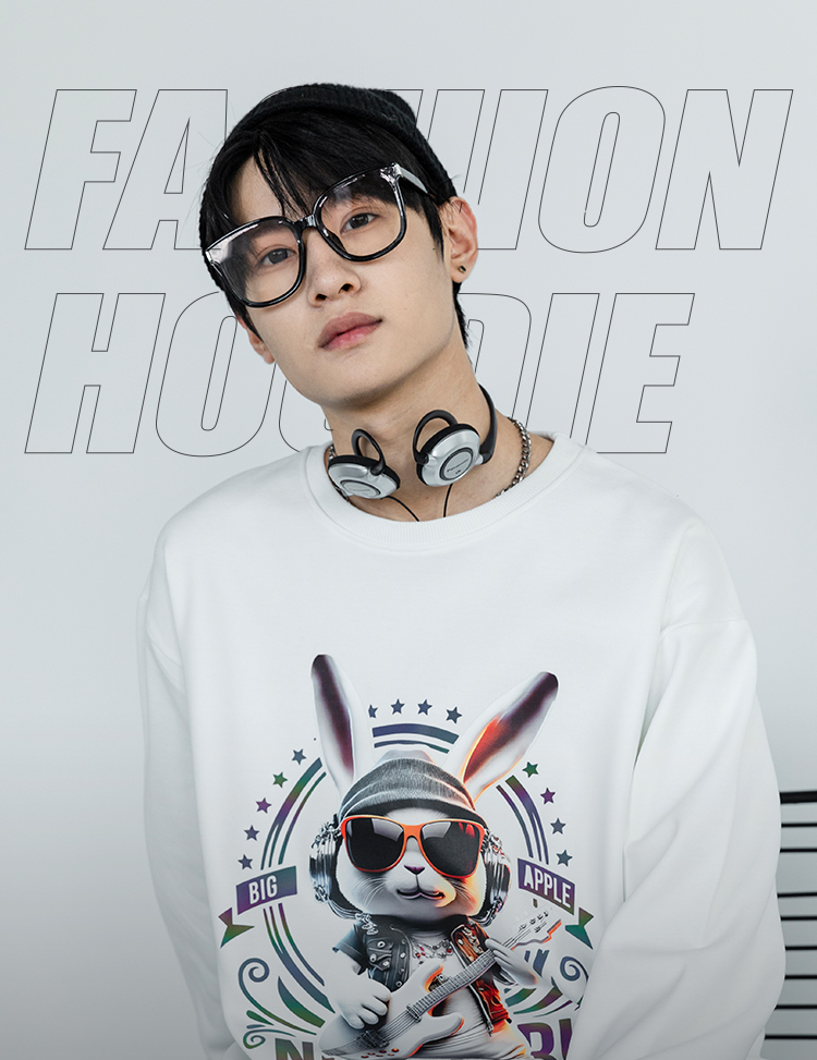 圆领厚款卫衣动物印花音乐兔男女情侣款潮牌上衣宽松套头时尚卫衣SZ2742