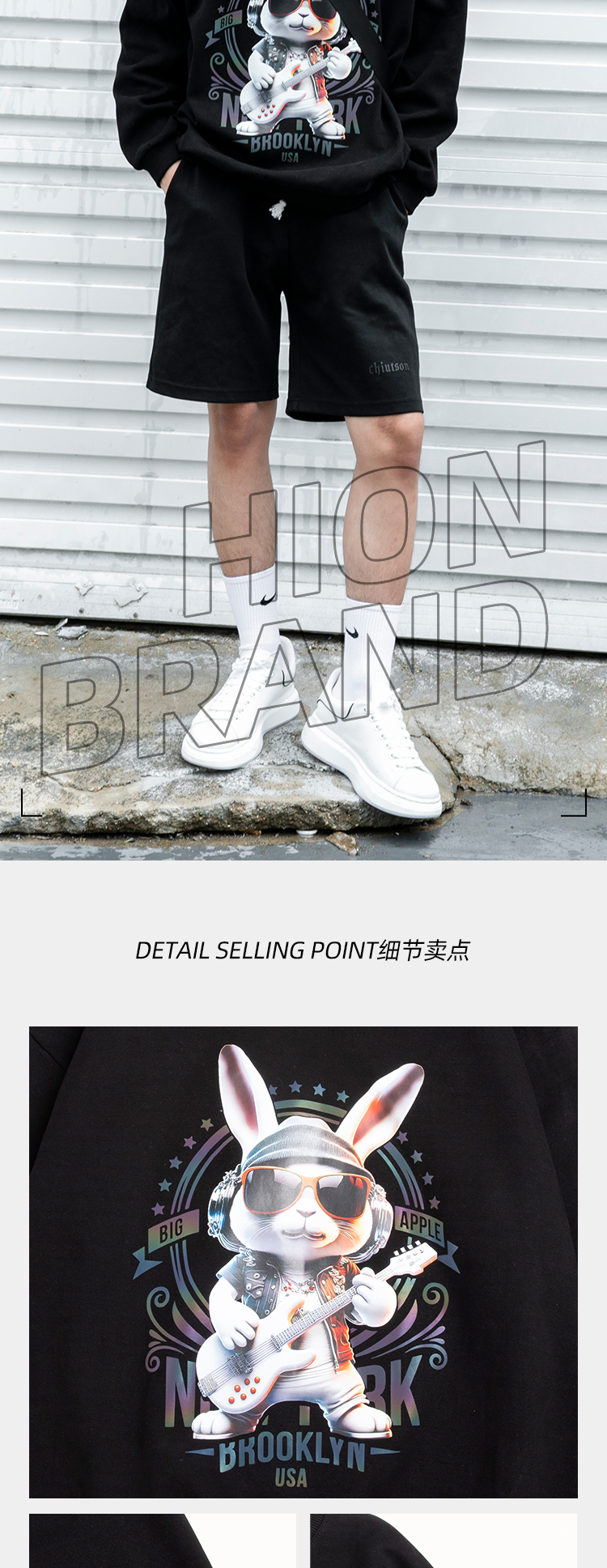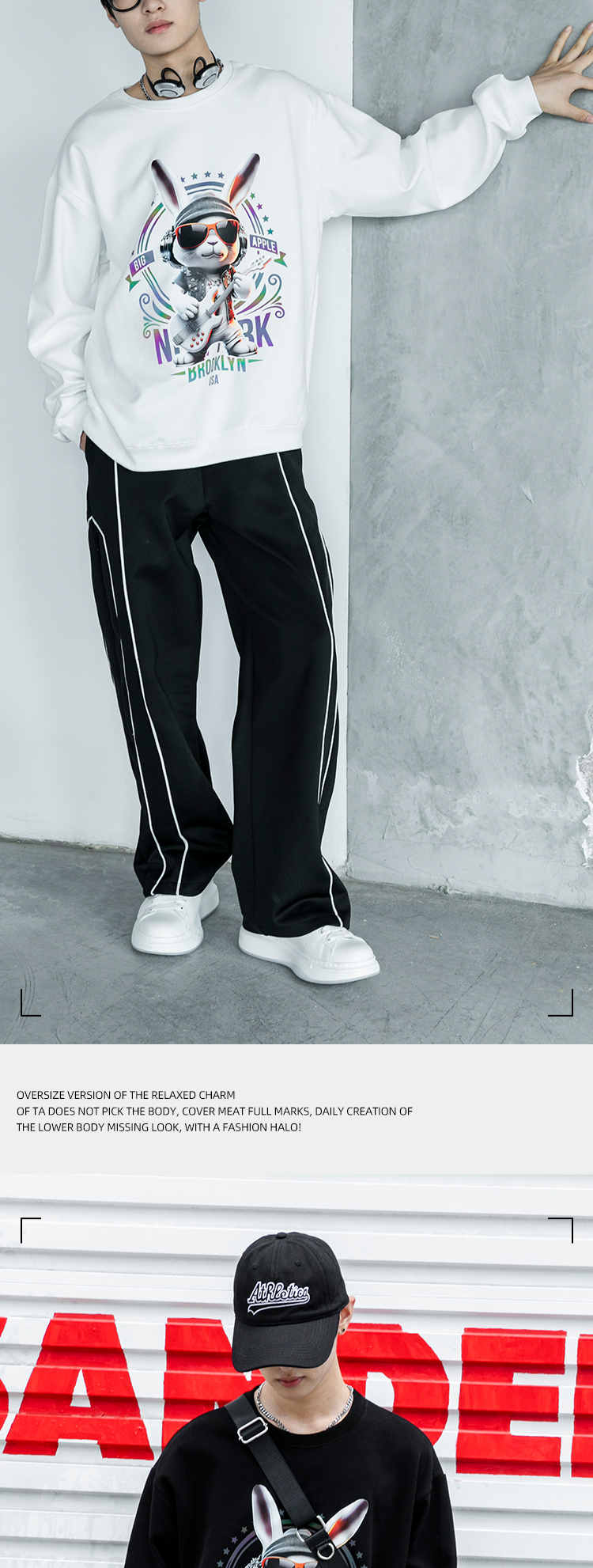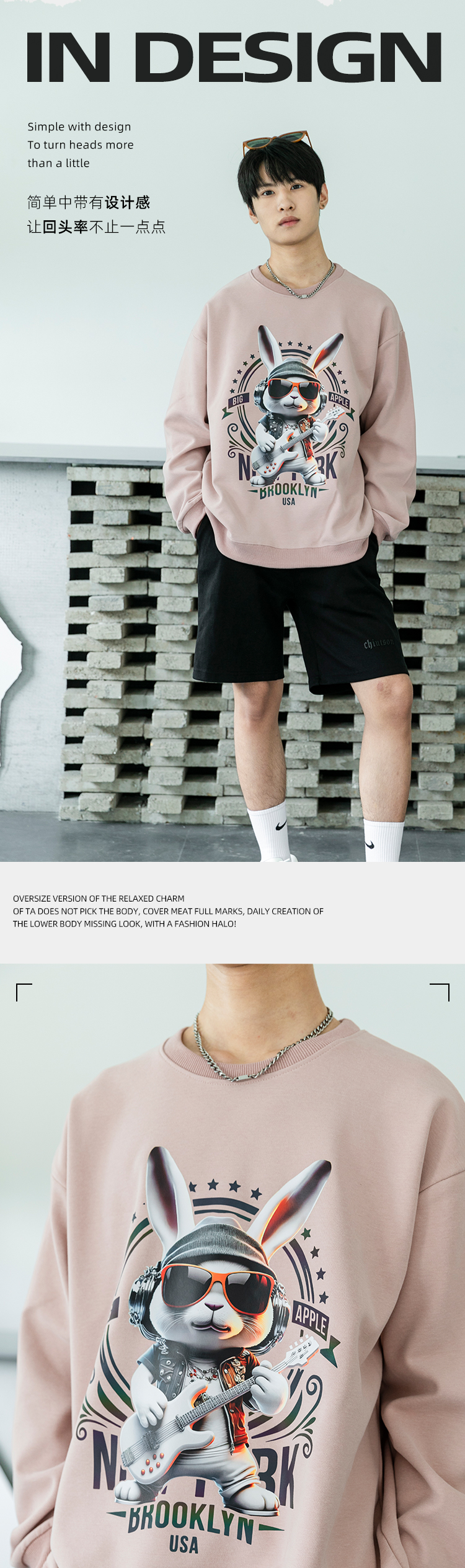 圆领厚款卫衣动物印花音乐兔男女情侣款潮牌上衣宽松套头时尚卫衣SZ2742