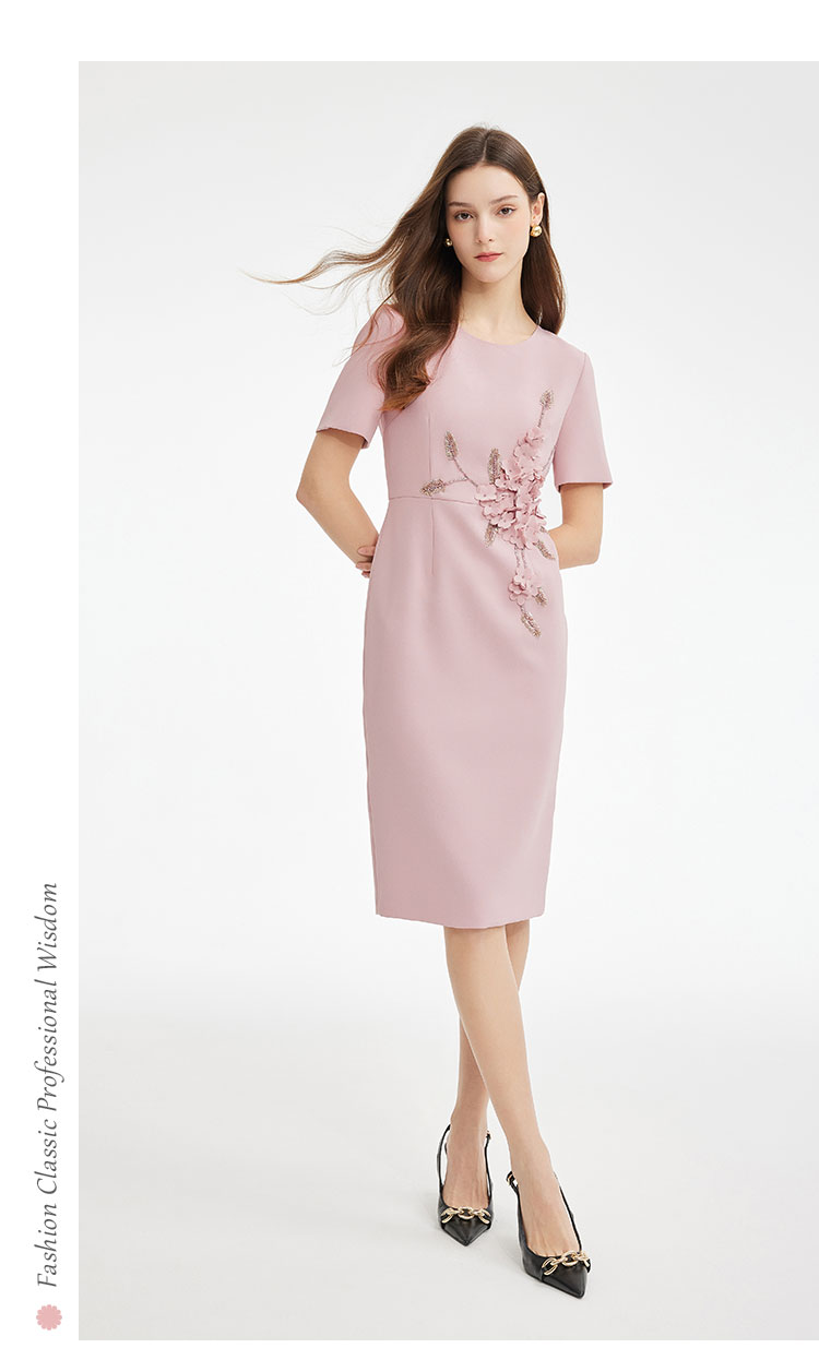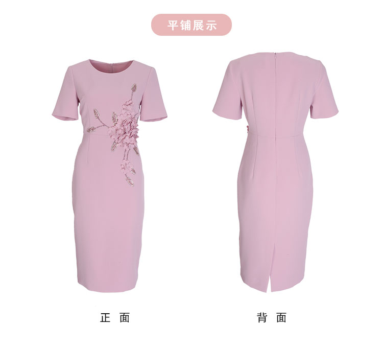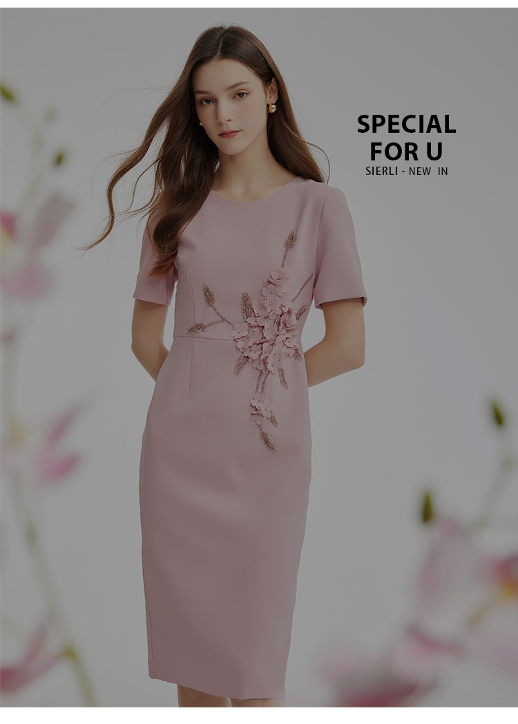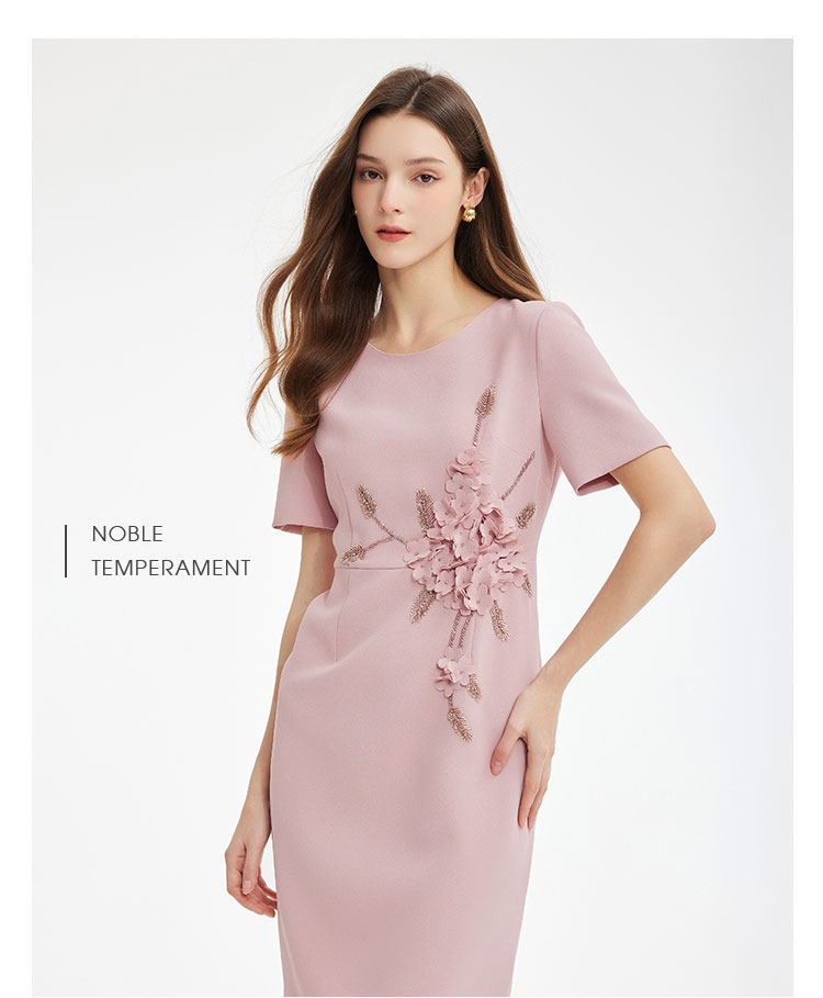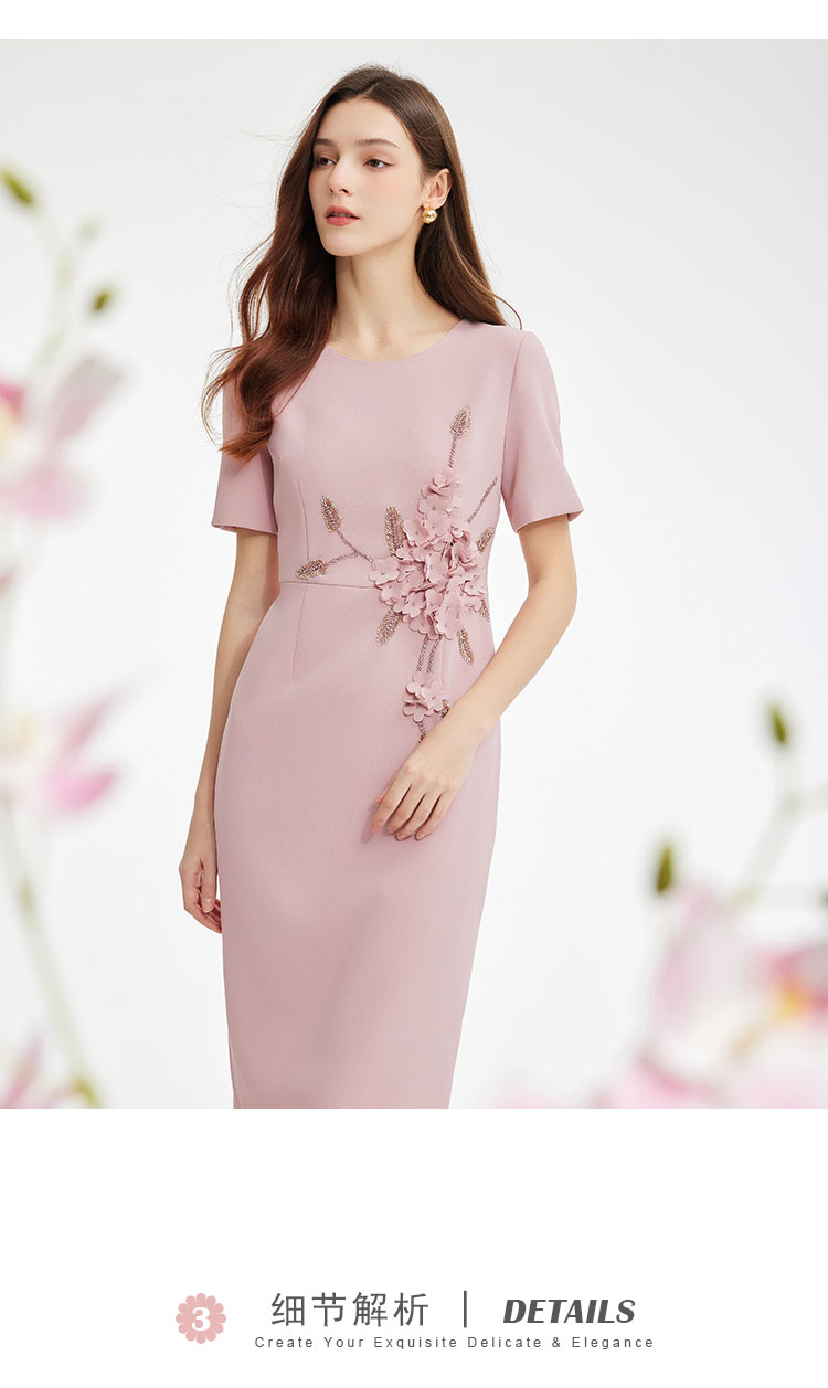 PF877斯尔丽2024新款宴会礼服着装立体手工装饰花收腰修身版型连衣裙