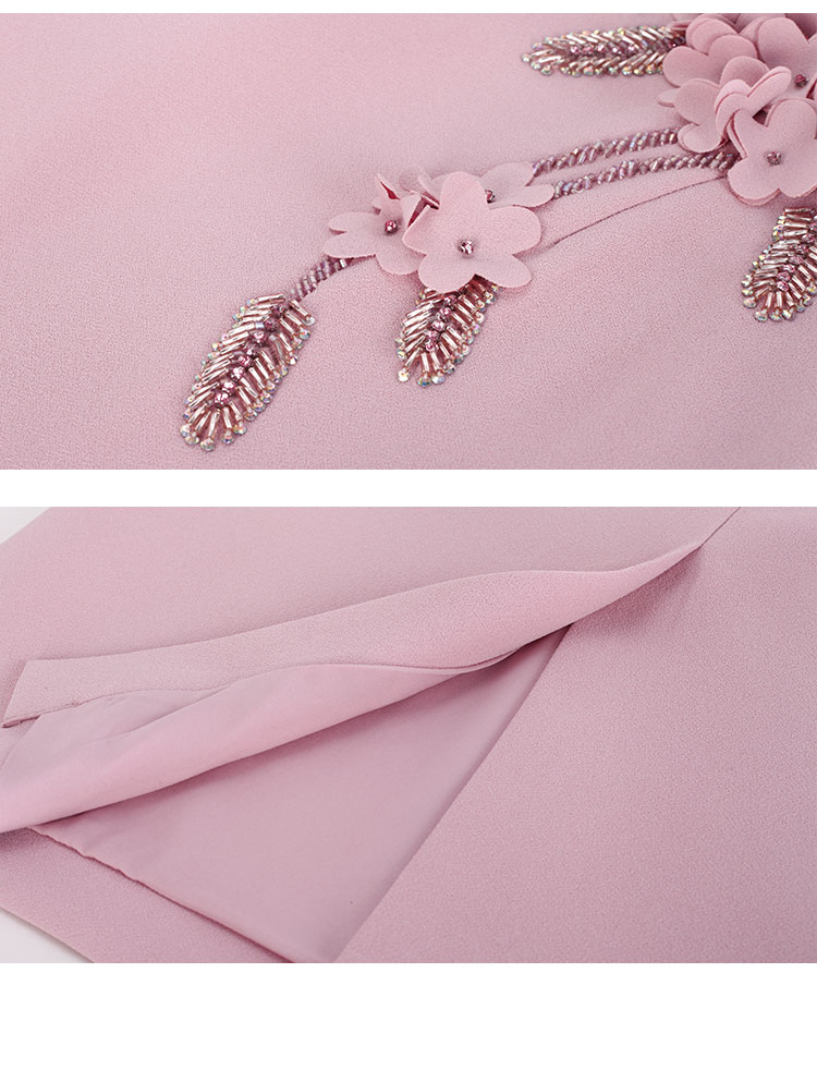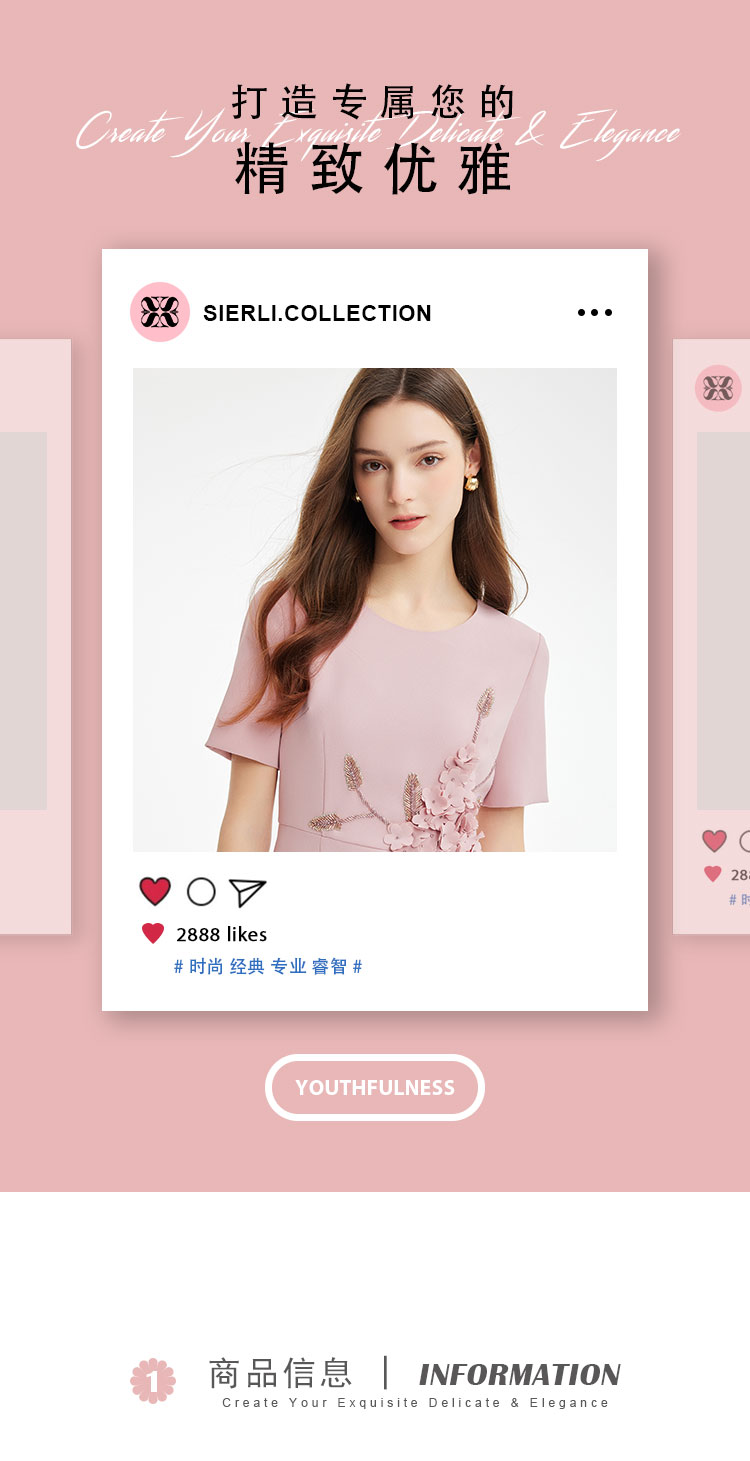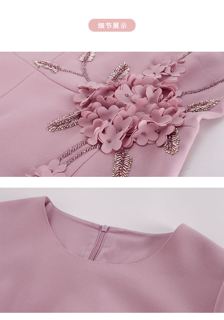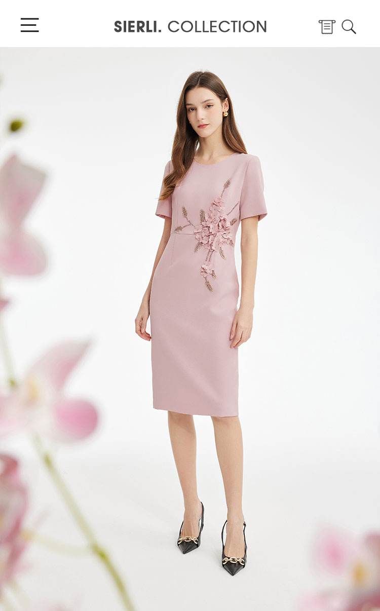 PF877斯尔丽2024新款宴会礼服着装立体手工装饰花收腰修身版型连衣裙