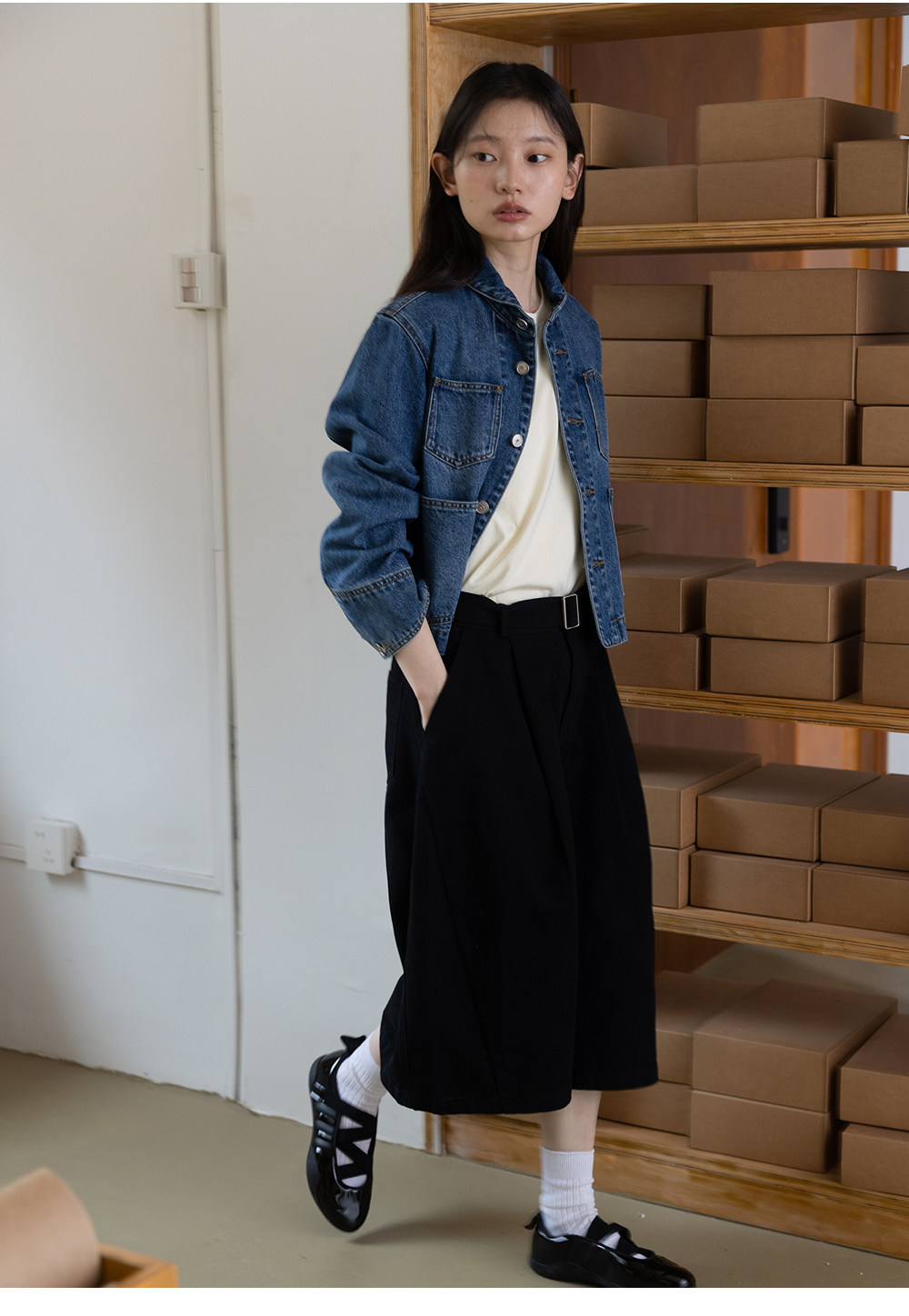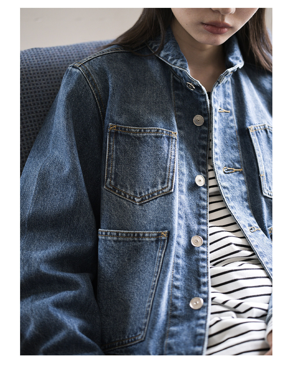 步履不停/6A20027C/水洗牛仔翻领外套