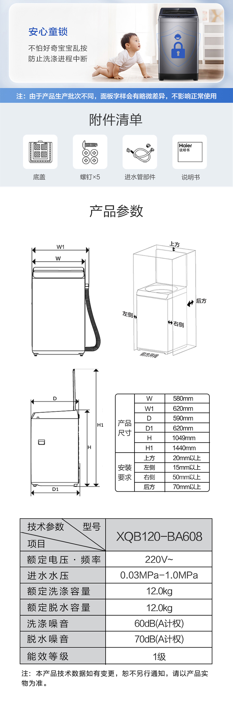 海尔波轮洗衣机 XQB120-BA608