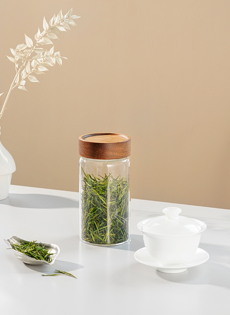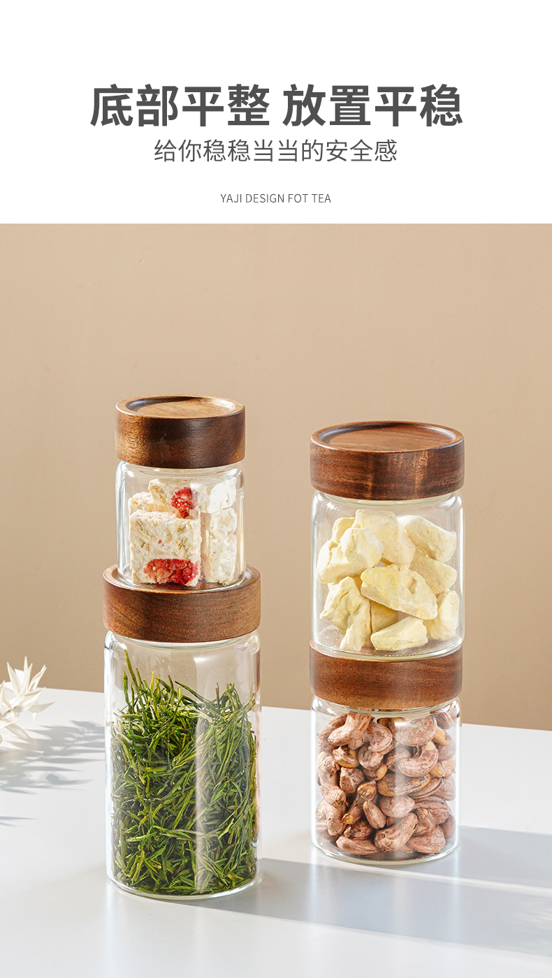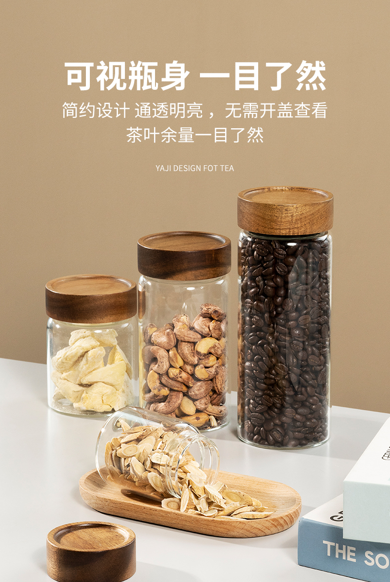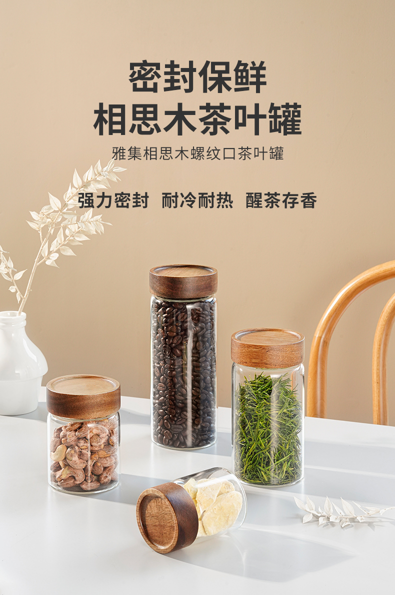 雅集茶具 相思木茶叶罐 复古玻璃储物罐 透明螺纹口茶叶收纳罐