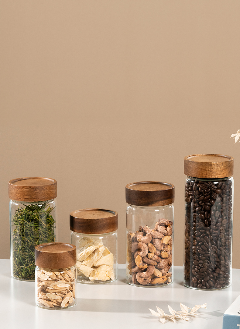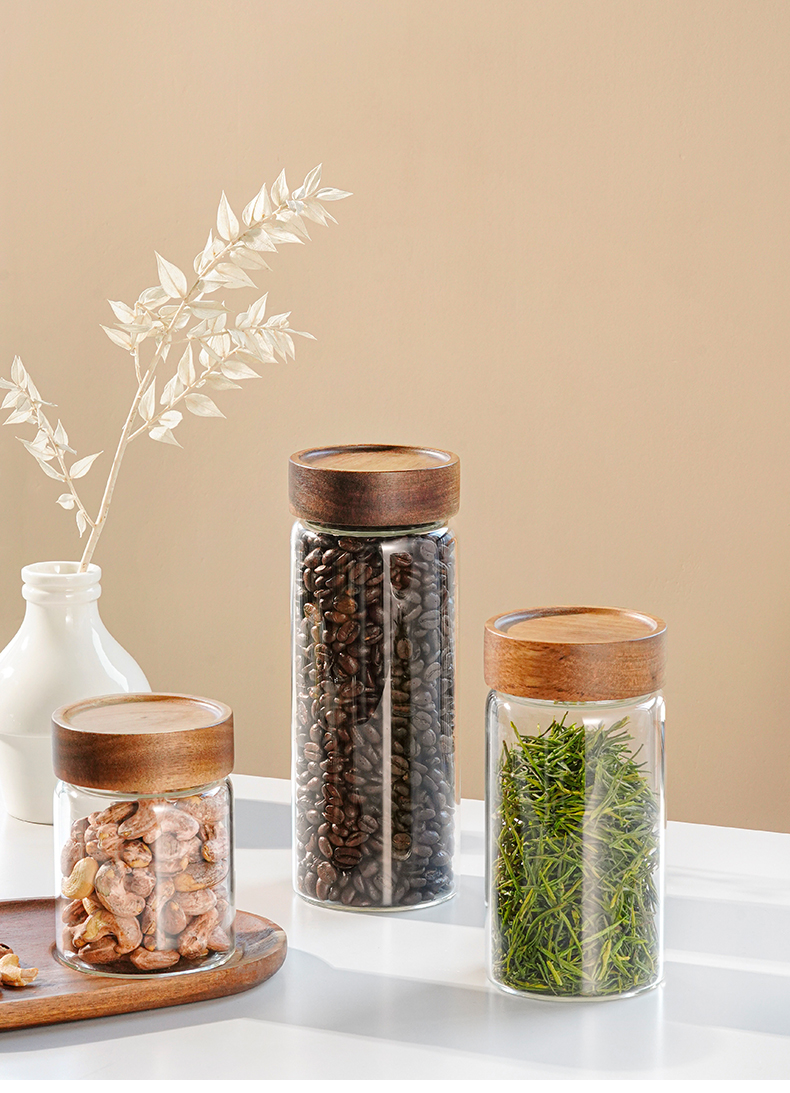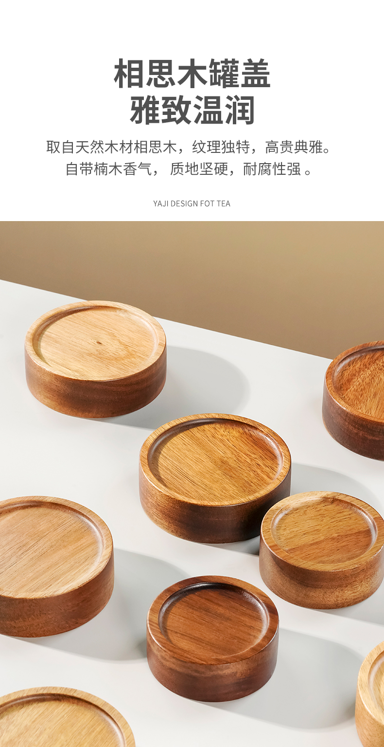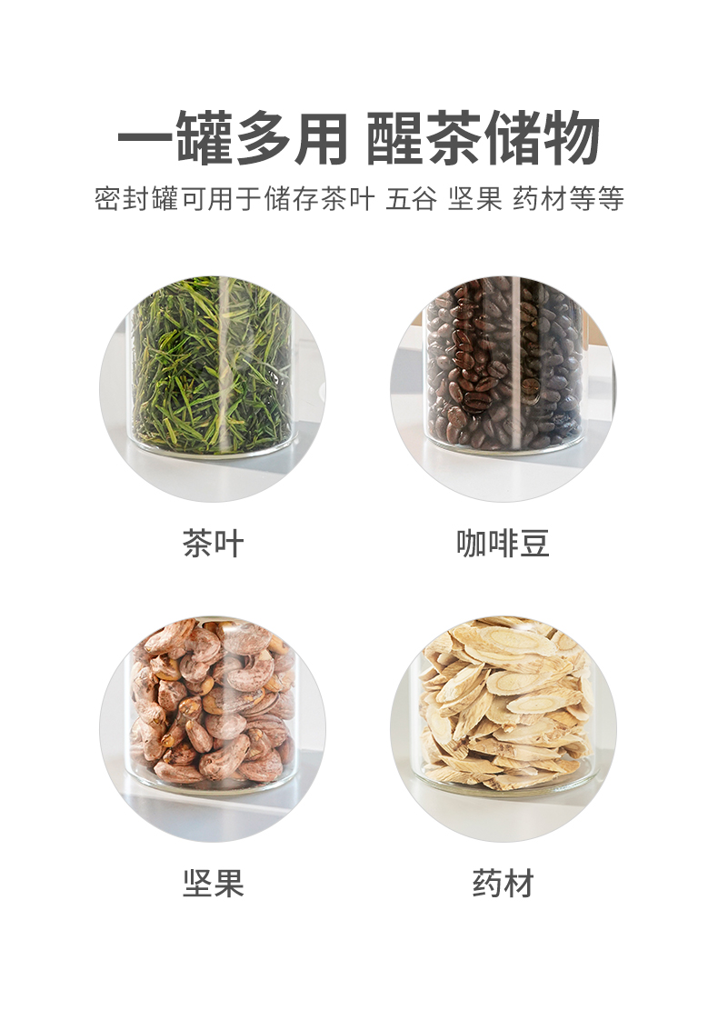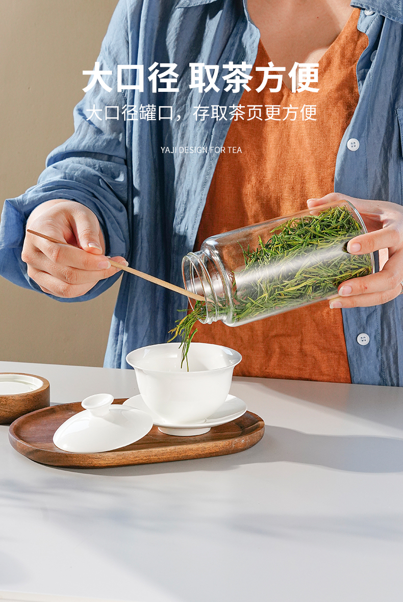 雅集茶具 相思木茶叶罐 复古玻璃储物罐 透明螺纹口茶叶收纳罐