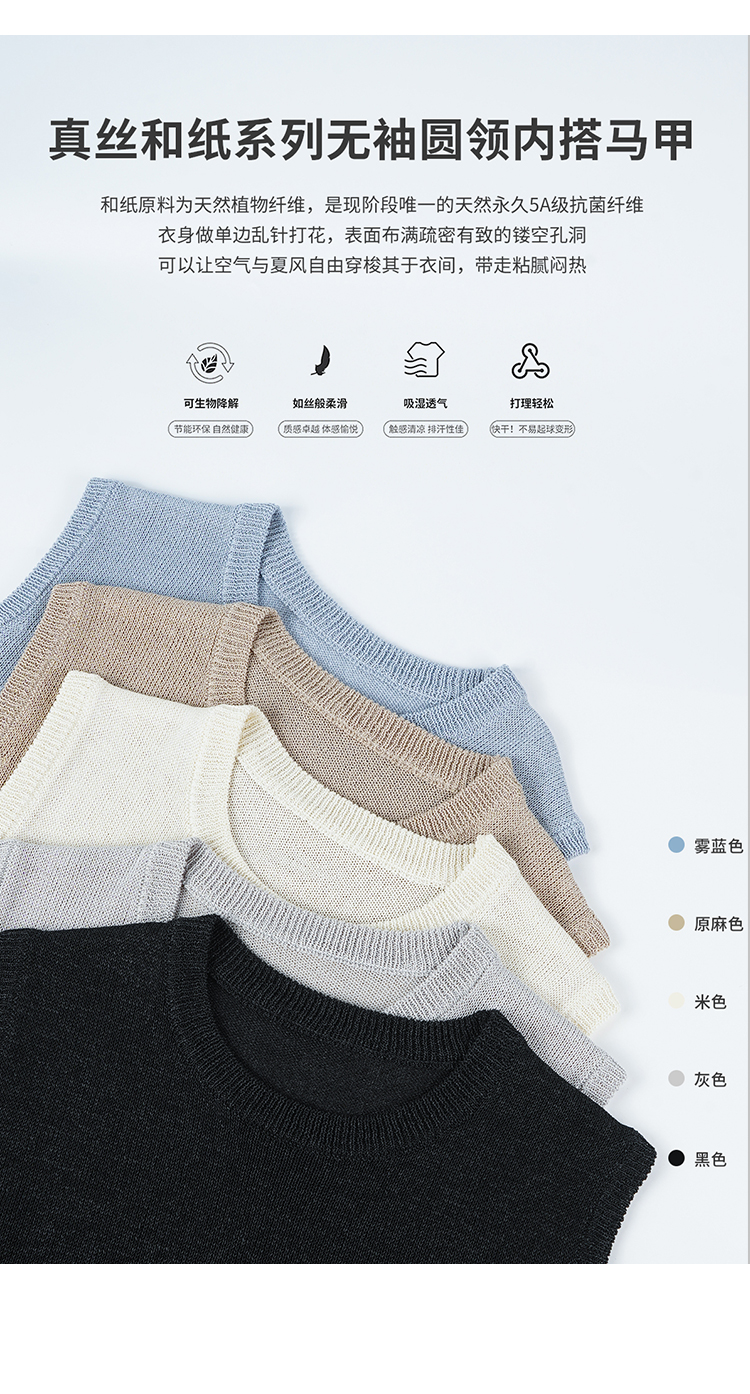LILYMOON 圆领无袖背真丝和纸纱圆领无袖背心心