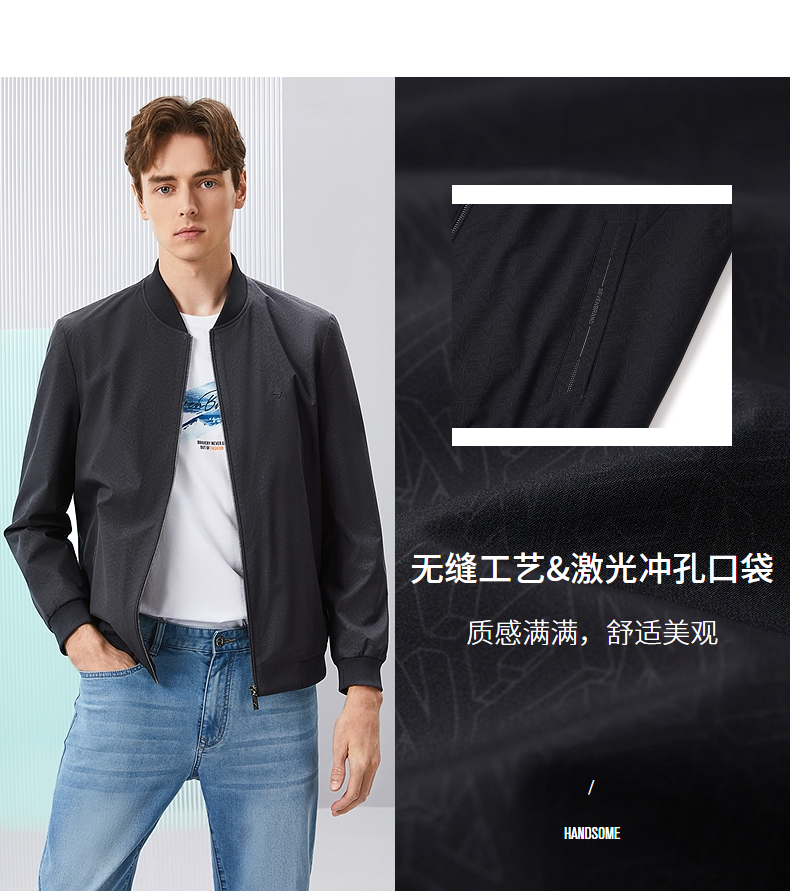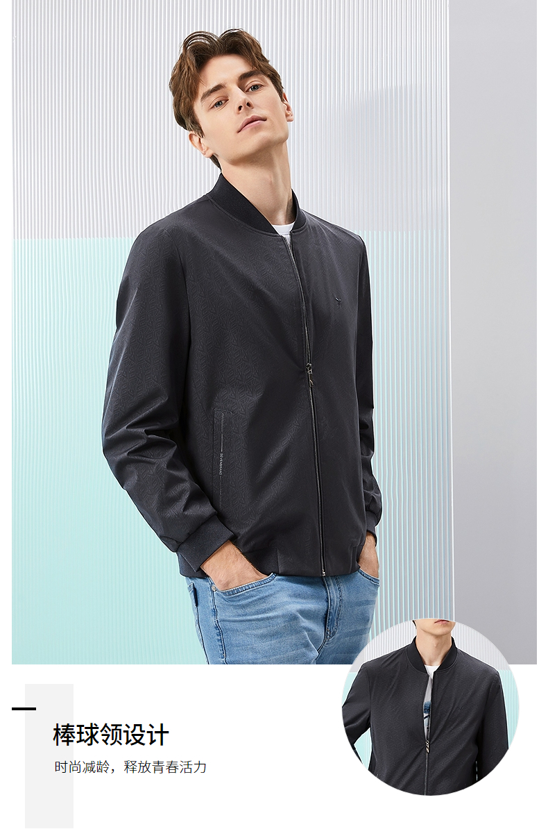 柒牌男装棒球领夹克2024春季新款时尚休闲通勤百搭男士茄克衫外套 126K70120