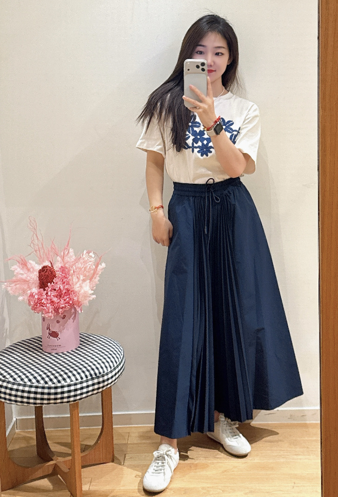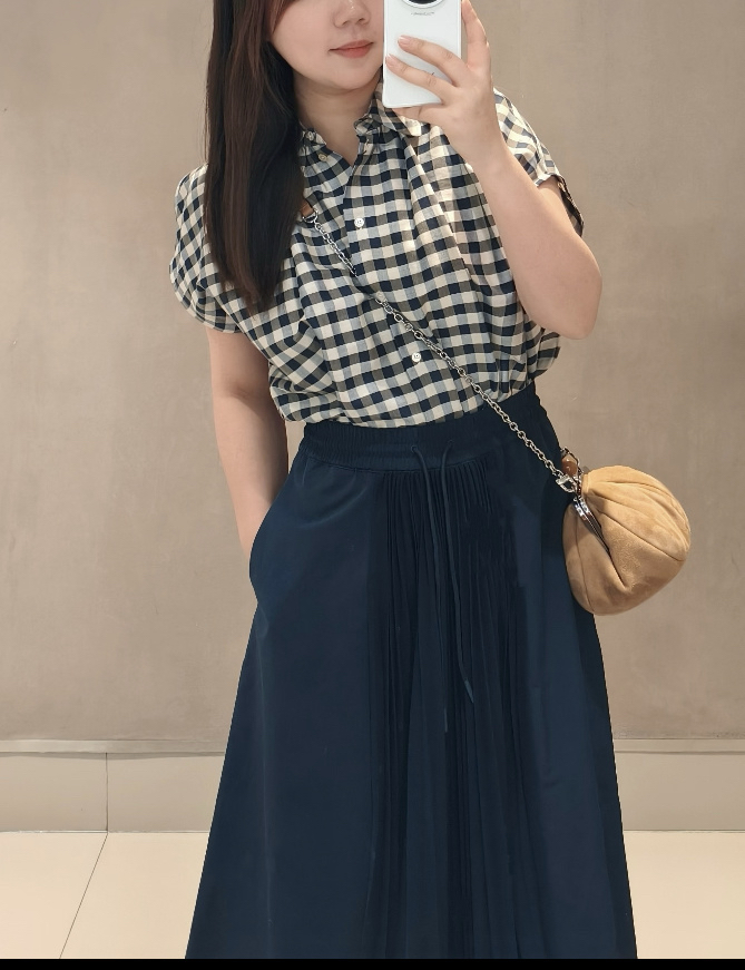 31-6纯圆正 max女士梭织拼接风琴褶皱 半身裙 号很足 我穿L宽松 建议165以上入