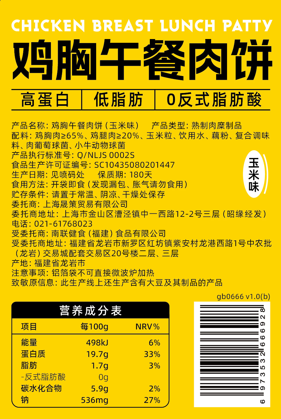 哥本优选鸡胸午餐肉饼 50g*6枚