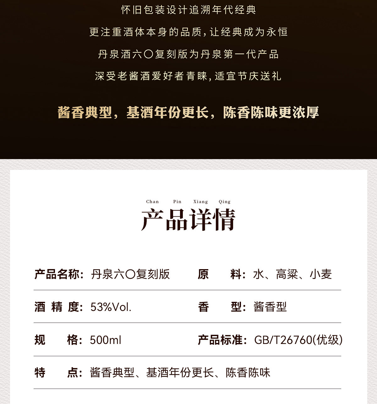 53度丹泉酒六O年代复刻版500ml 单瓶