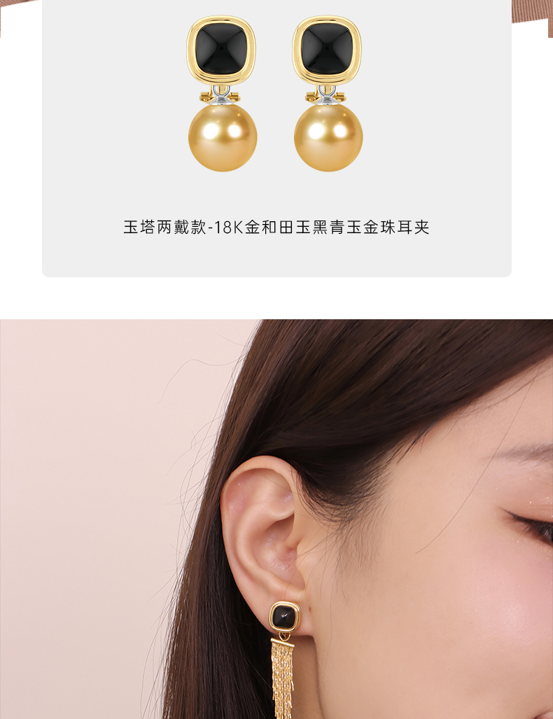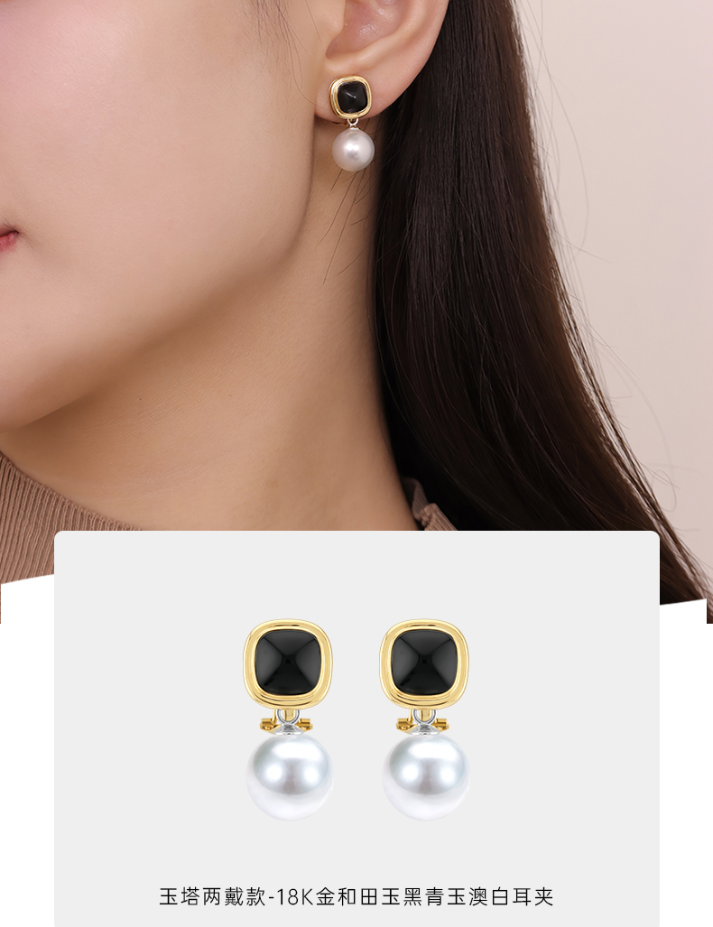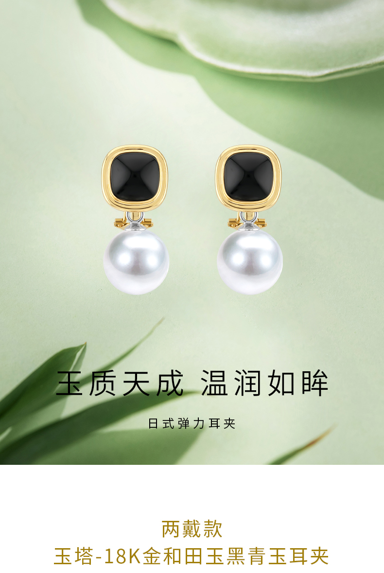 【天猫同款】两戴款玉塔-和田玉黑青玉耳夹