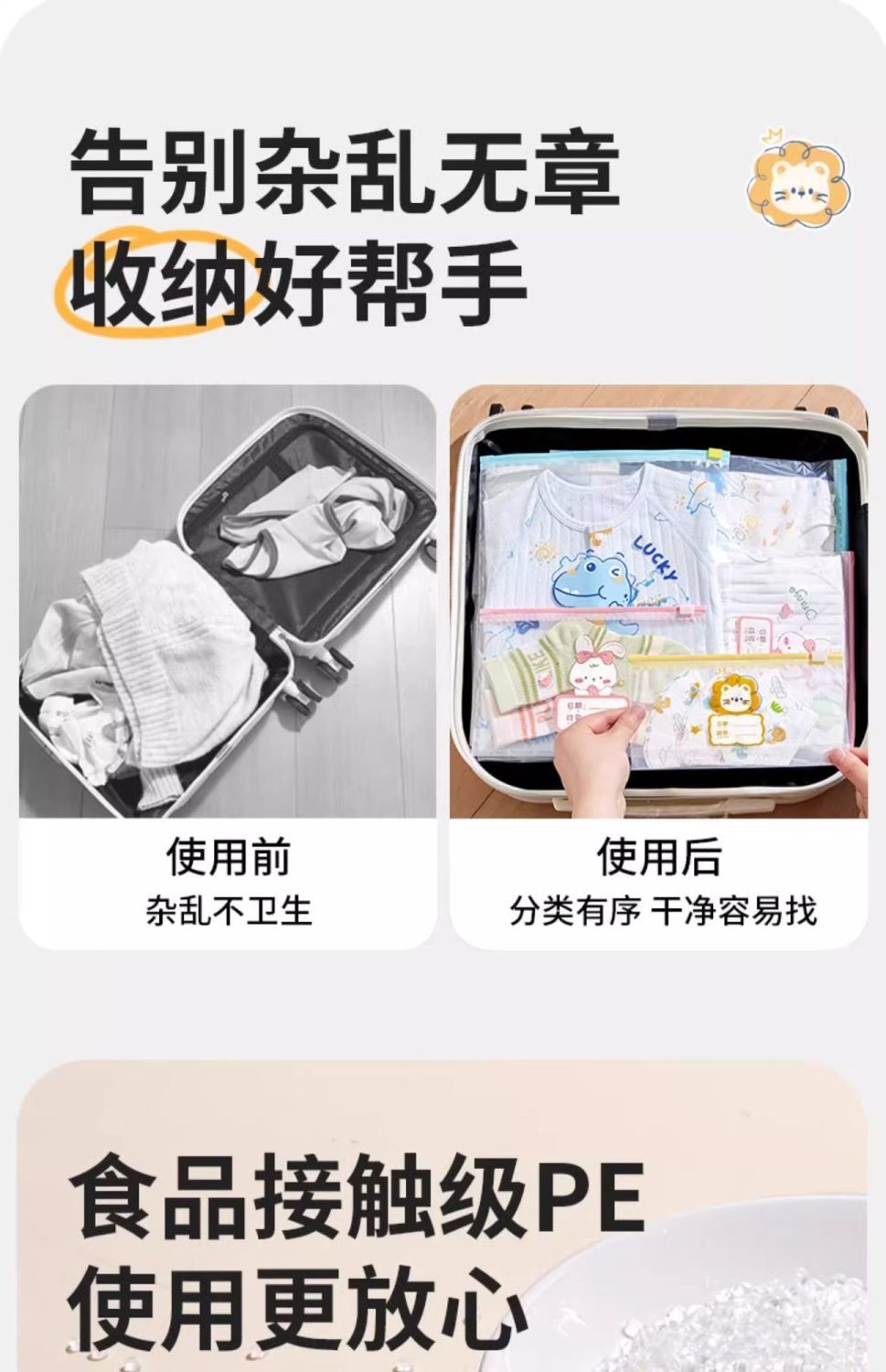 爱贝迪拉密封袋婴幼儿专用分类归纳整理杂物旅行防水密封分装袋子