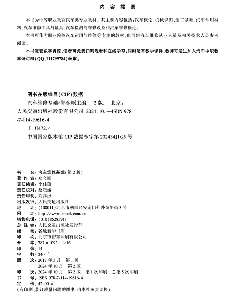 书名:汽车维修基础(第2版)