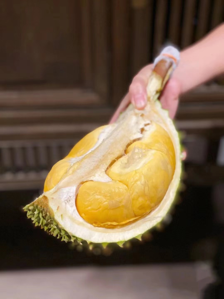 榴莲被称为“水果之王”,【黑刺】榴莲则堪称“水果王中王”。它的果肉呈奶油状,有些发粘,口感糯滑,几乎不含纤维;相比“猫山王”色泽更为黄润,带有明亮的橙色调。它的味道浓郁而醇厚,前调有点炭火味道,尾味又像“XO”榴莲一样有一点点酷味,味觉层次分明而又富于变化,激烈持久,就像品鉴层次感十足的顶级红酒般享受~不管你是不是榴莲爱好者,那浓郁又香醇的味道绝对让你一试难忘!