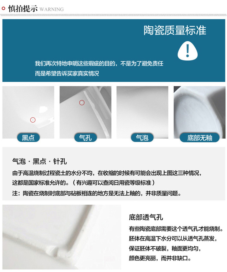 贴心的做工 加厚的陶瓷边沿 更耐磕碰,坚固耐用 抛光细腻,耐低温、耐煮、不易碎 很容易清洗 盘底部防滑设计 为防滑考虑,底部未上釉 不影响正常使用
