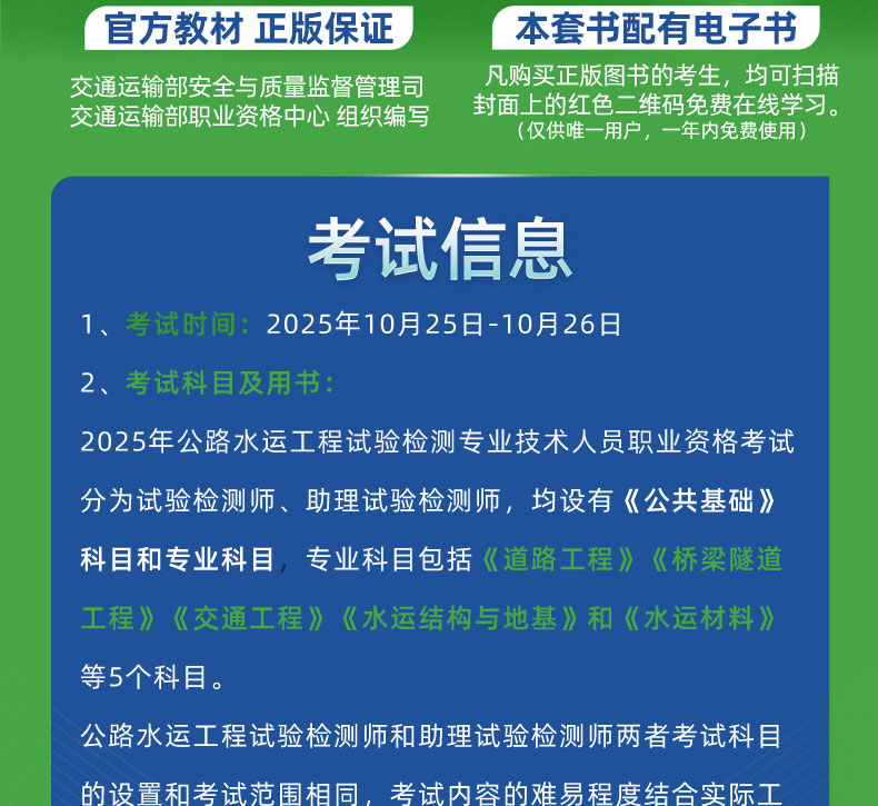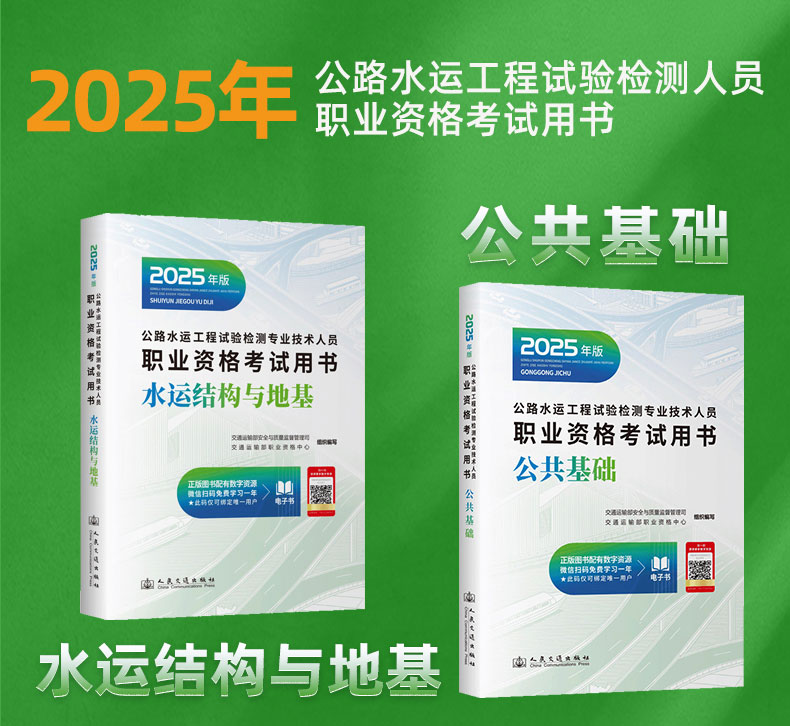 书名:【全2册】2025年版公路水运工程试验检测专业技术人员职业资格考试教材用书 公共基础+水运结构与地基