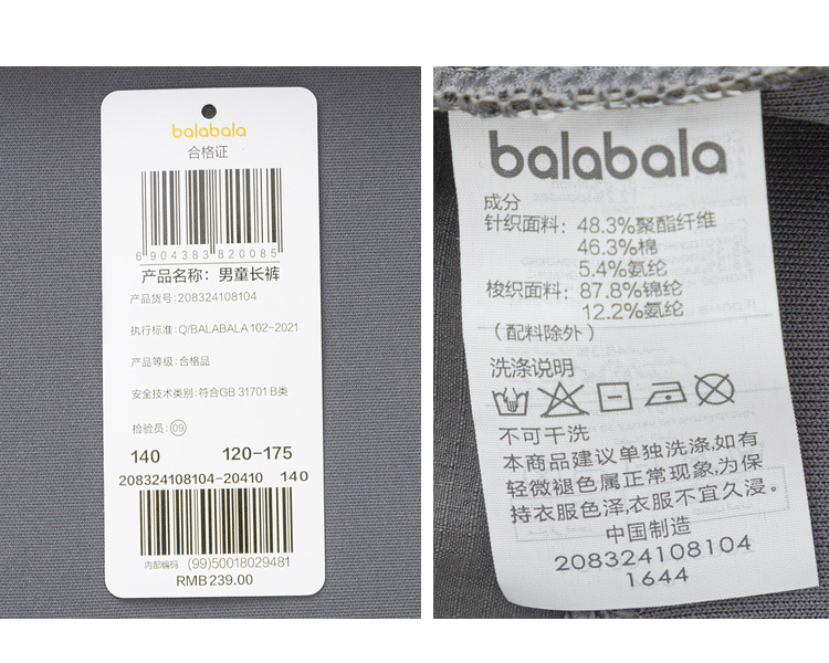 巴拉巴拉童装男童裤子儿童工装裤秋装新款长裤束脚运动裤印花