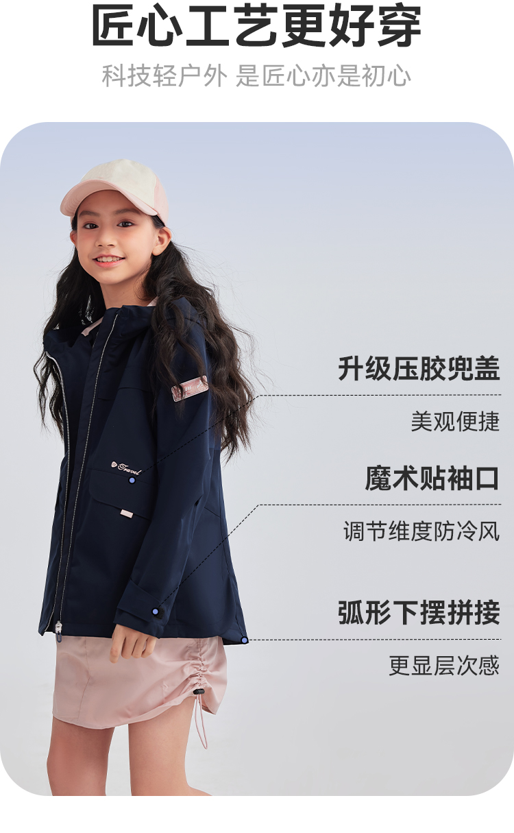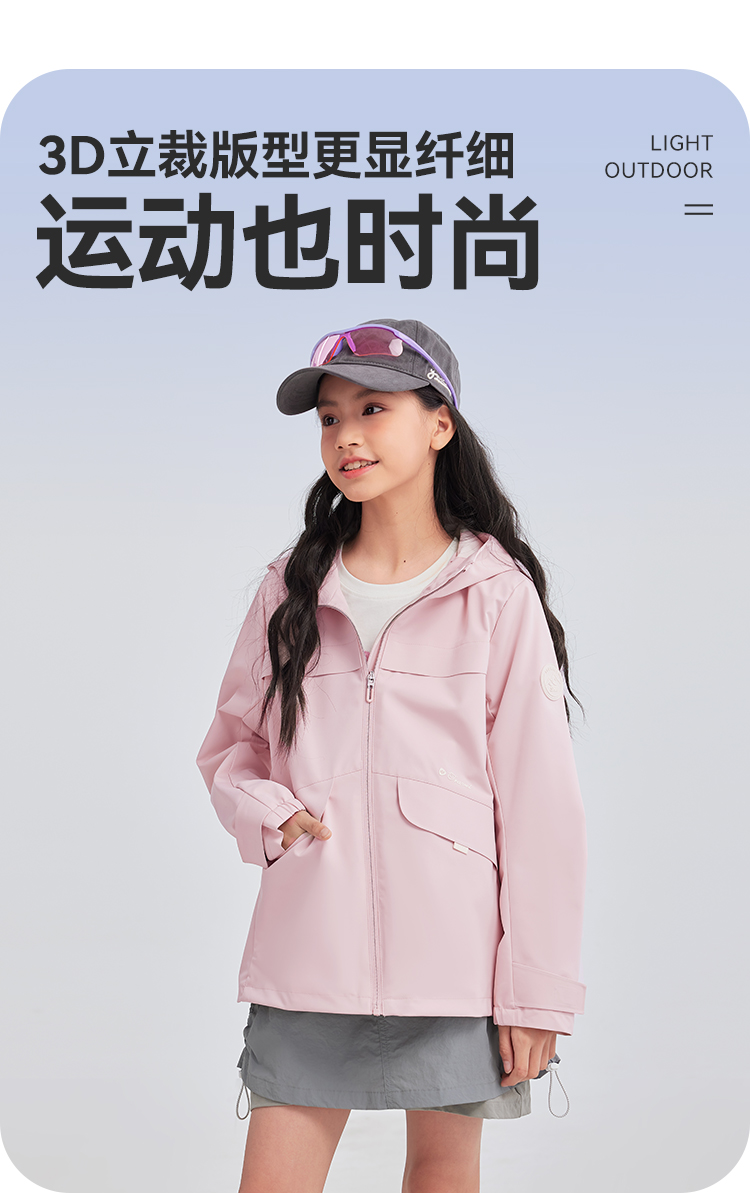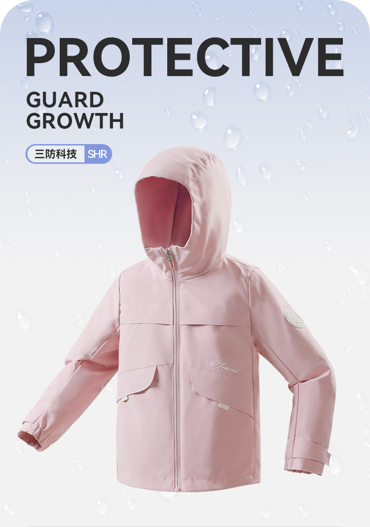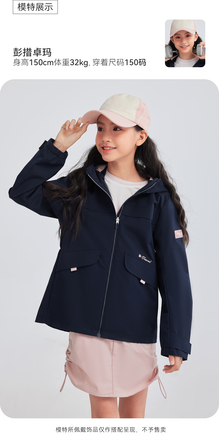 水孩儿童装女童外套薄款2025春装新品中大童三防透湿风衣连帽上衣