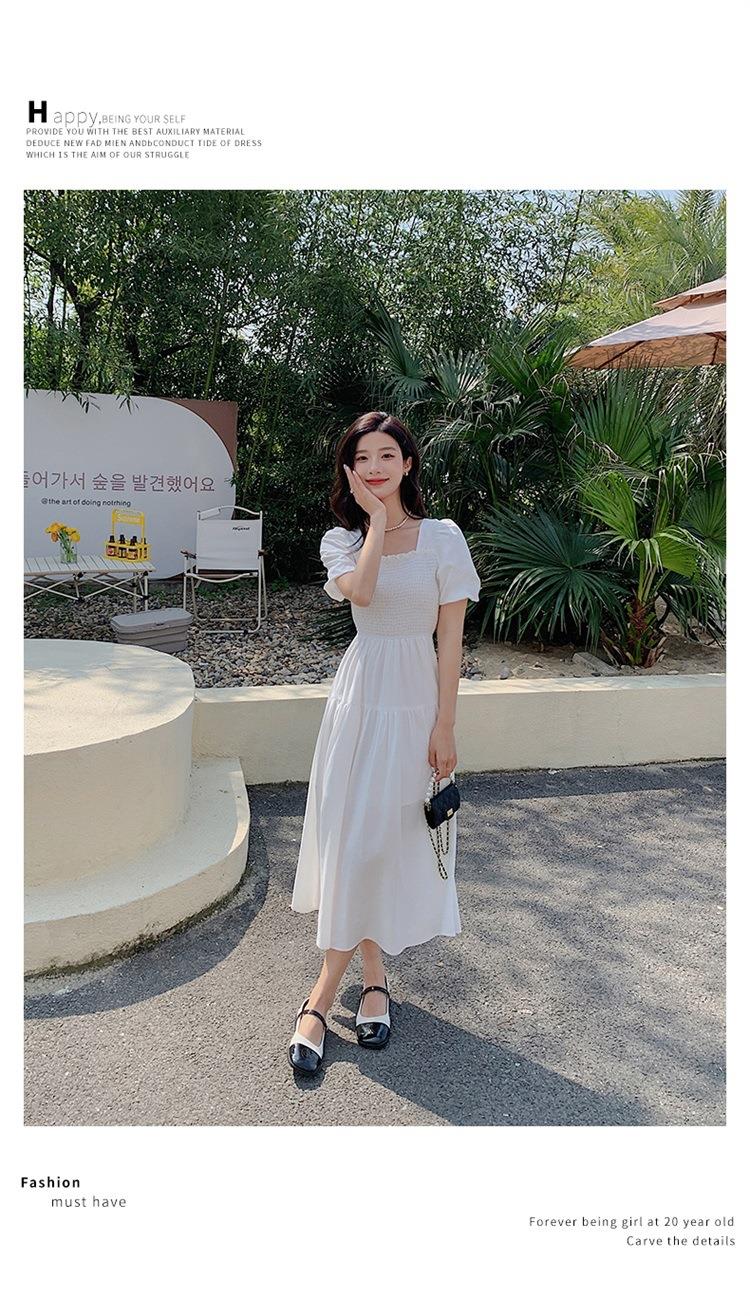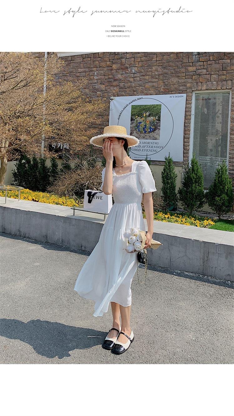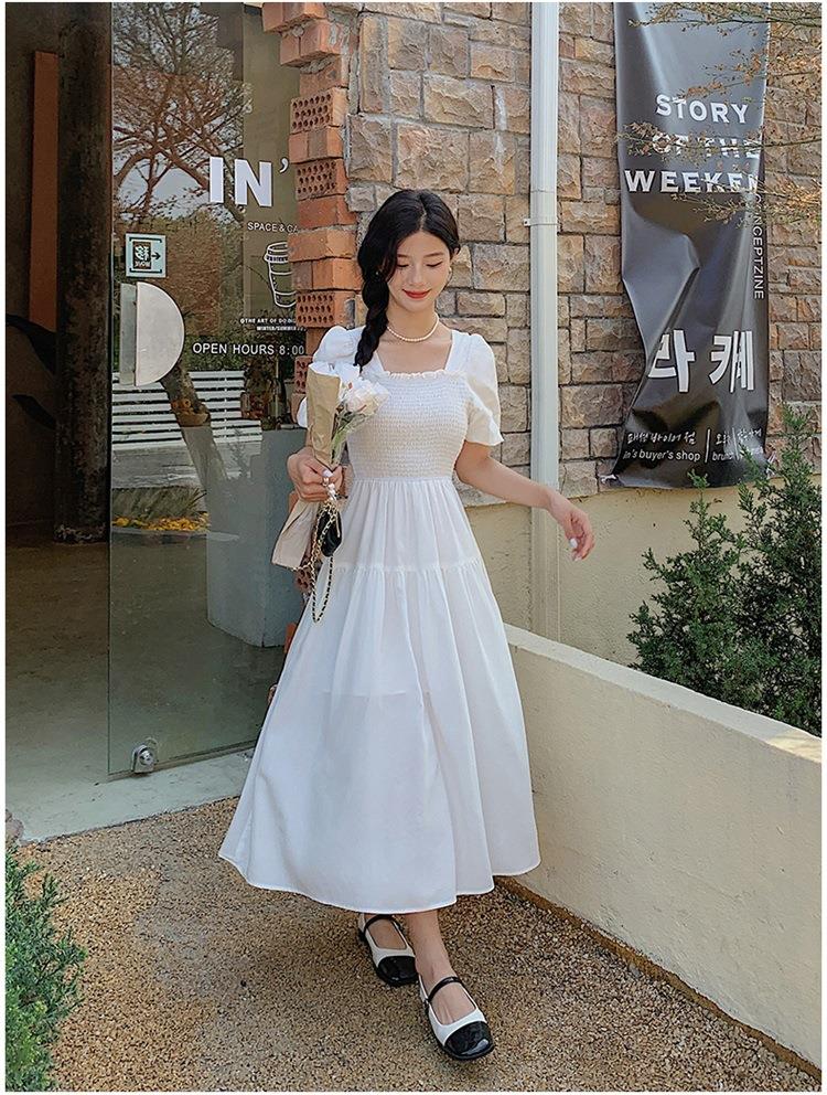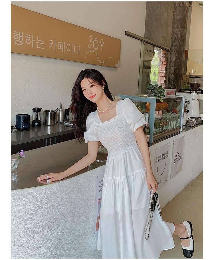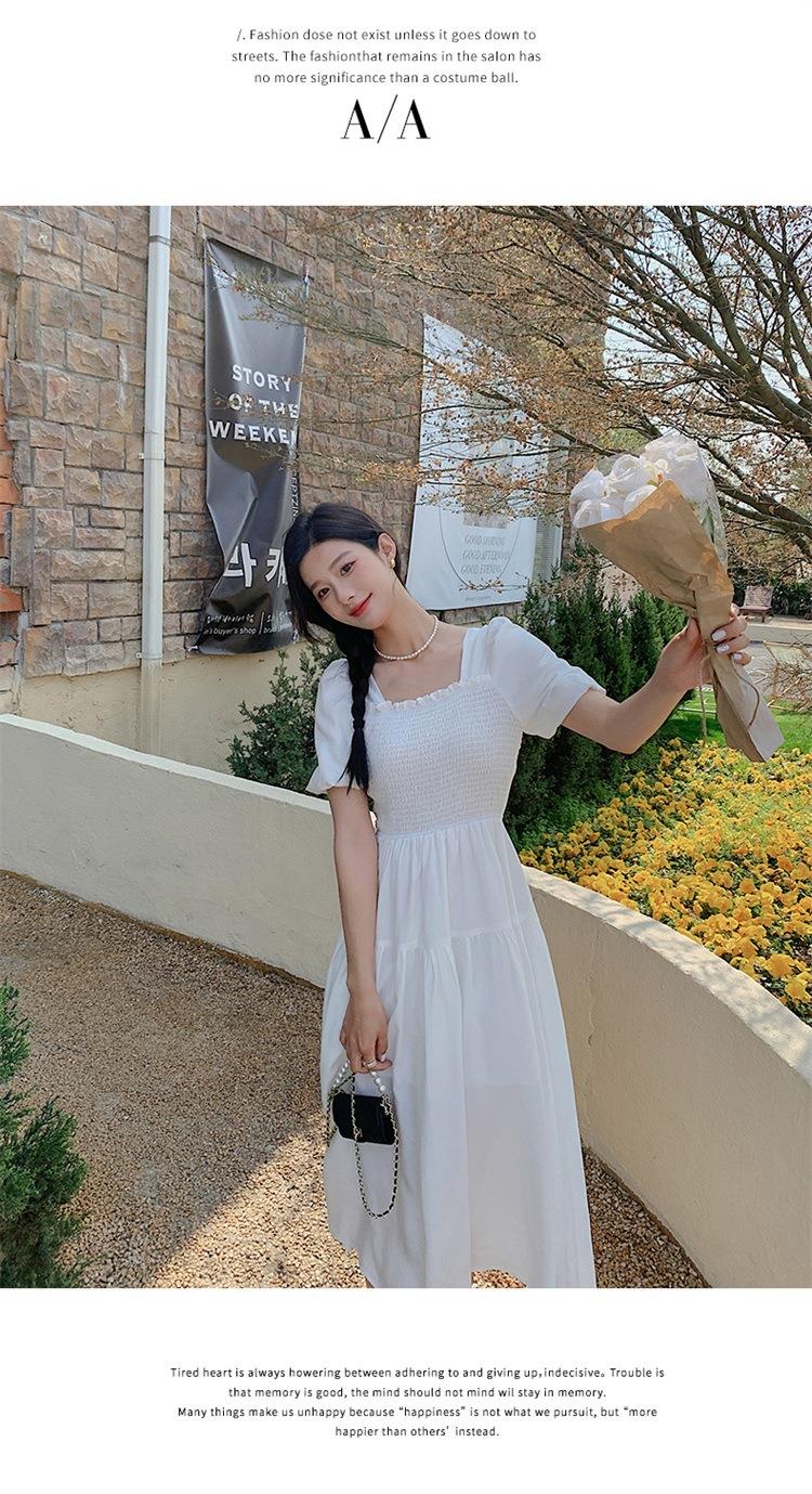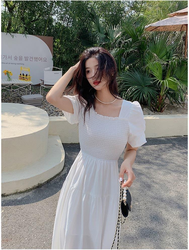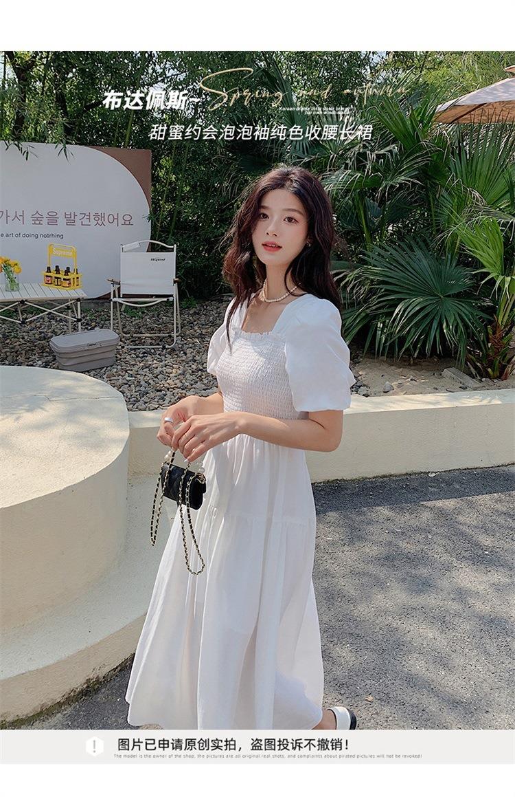 法式白色连衣裙夏季女气质高级2023女装新款开叉松紧显瘦小众长裙