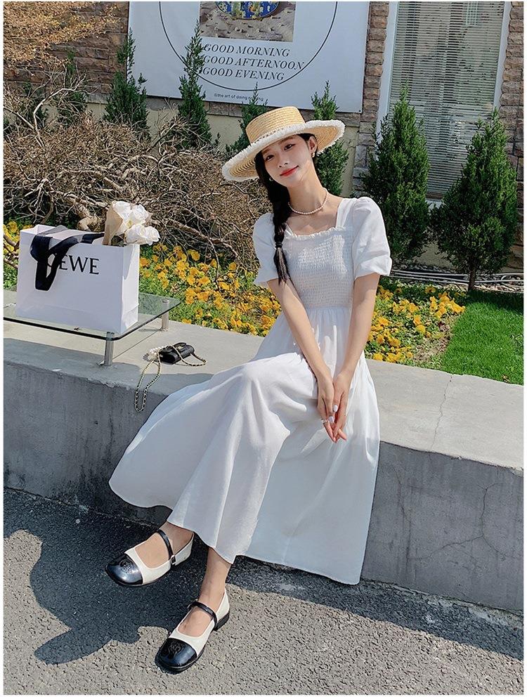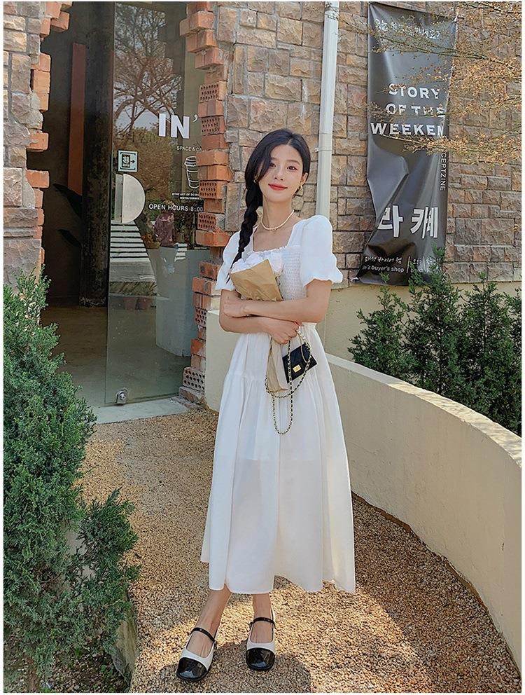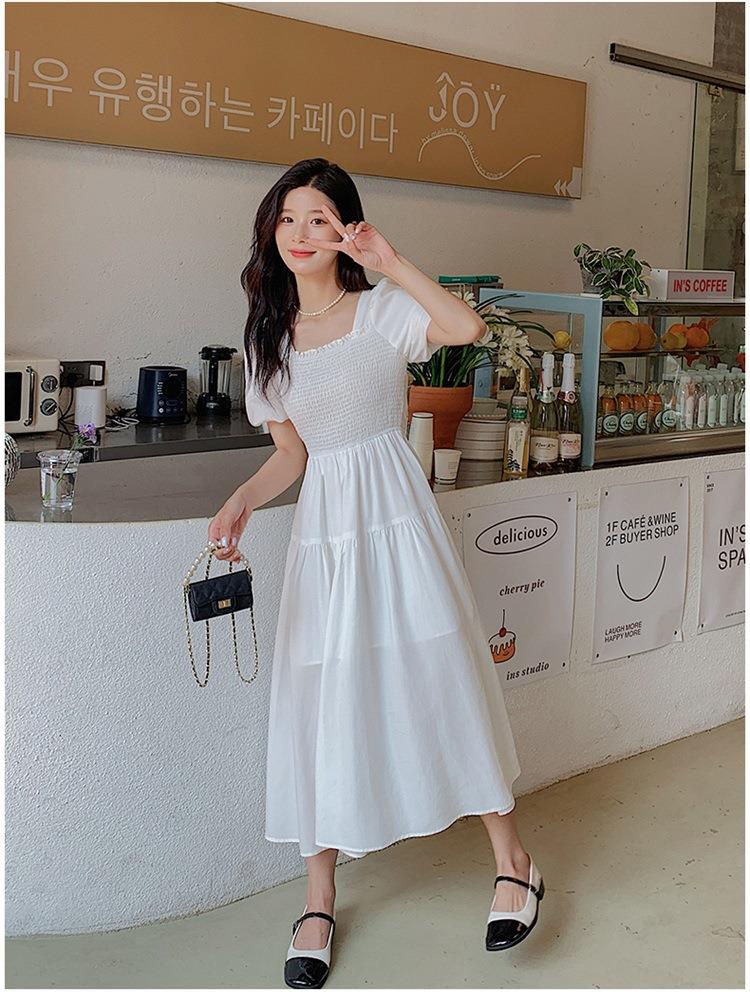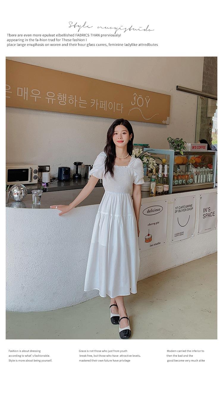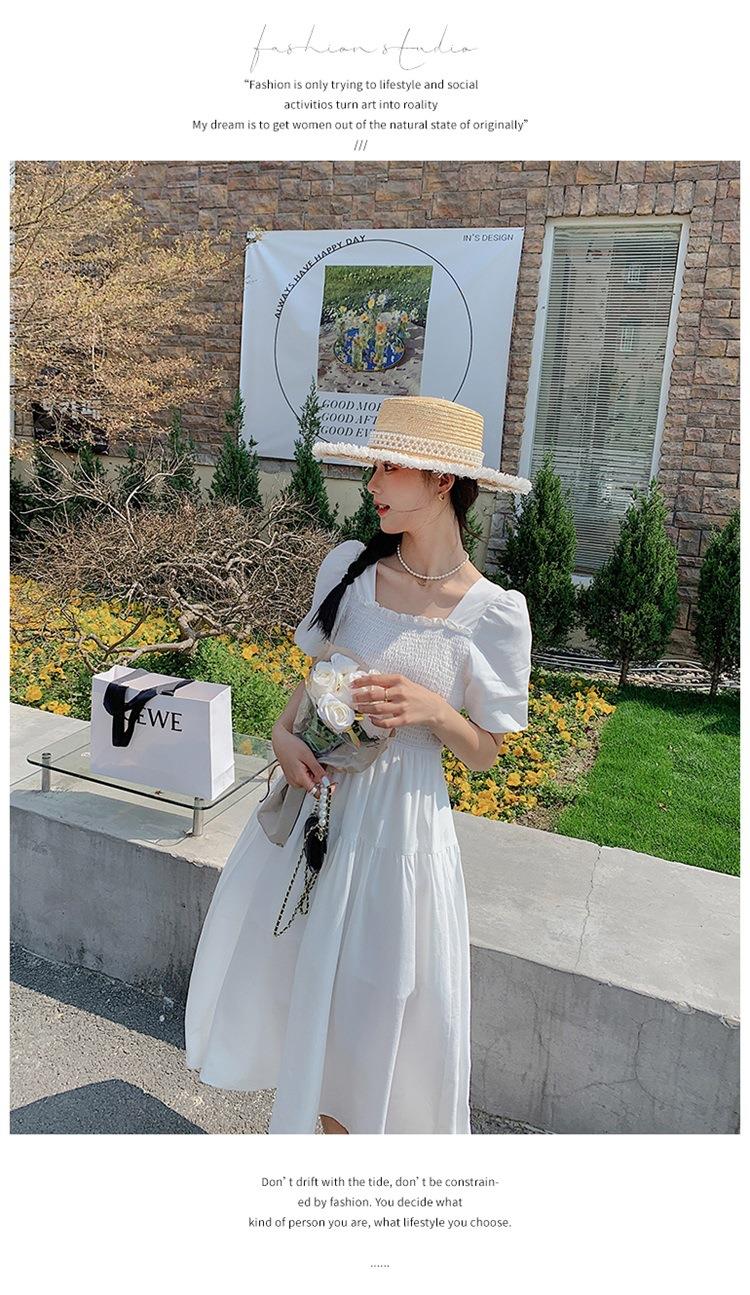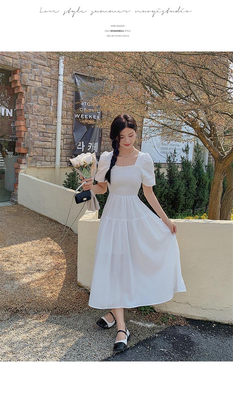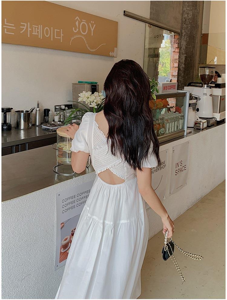 法式白色连衣裙夏季女气质高级2023女装新款开叉松紧显瘦小众长裙