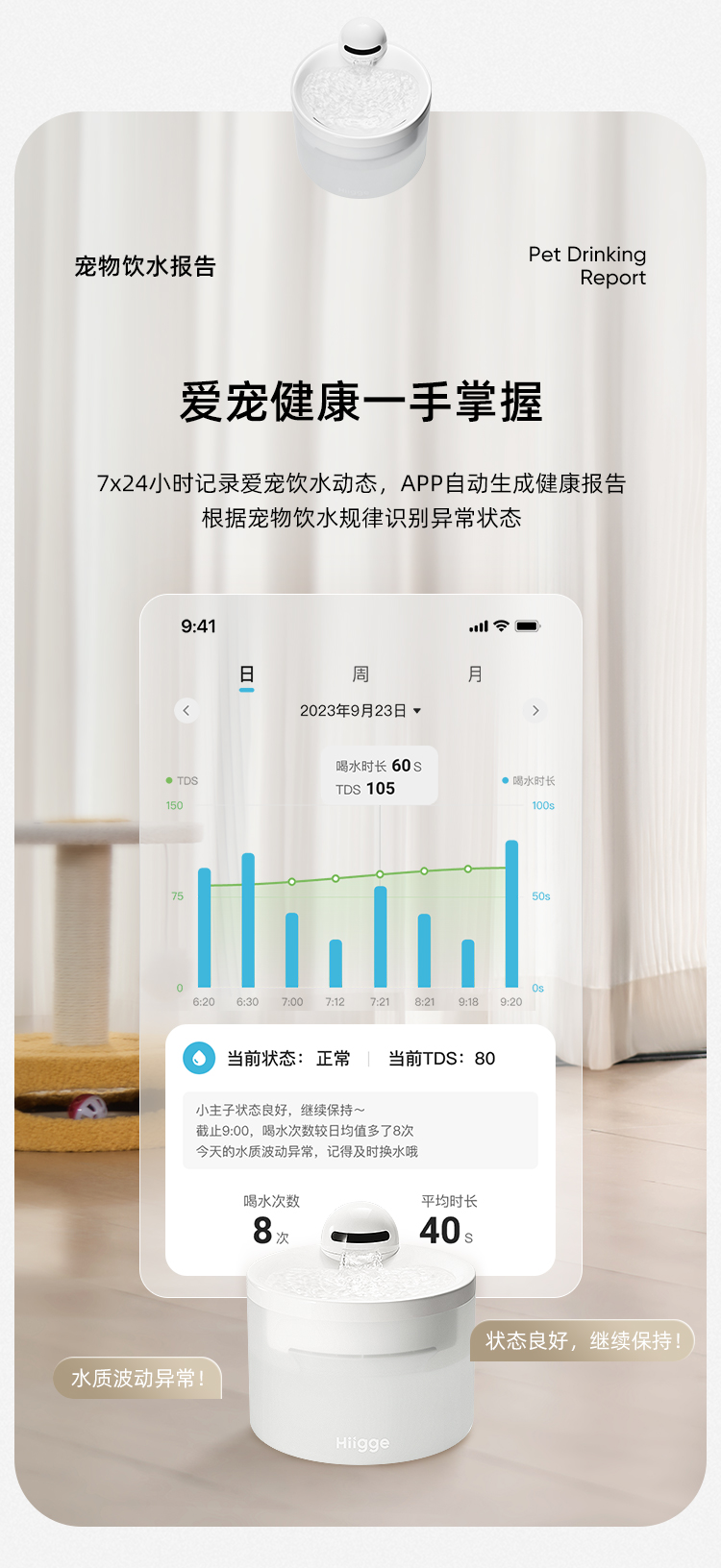 Hiigge宠物猫咪雪顶饮水机自动饮水器猫喝水器流动喂水器