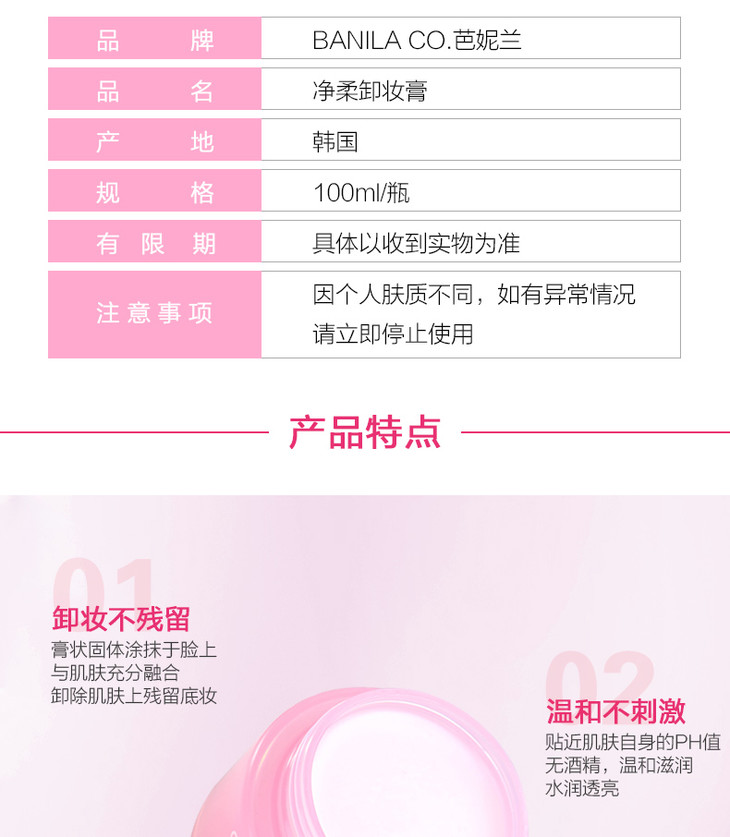 【 韩国Banilaco芭妮】兰致柔卸妆膏zero脸部温和深层清洁彩妆眼妆眼唇