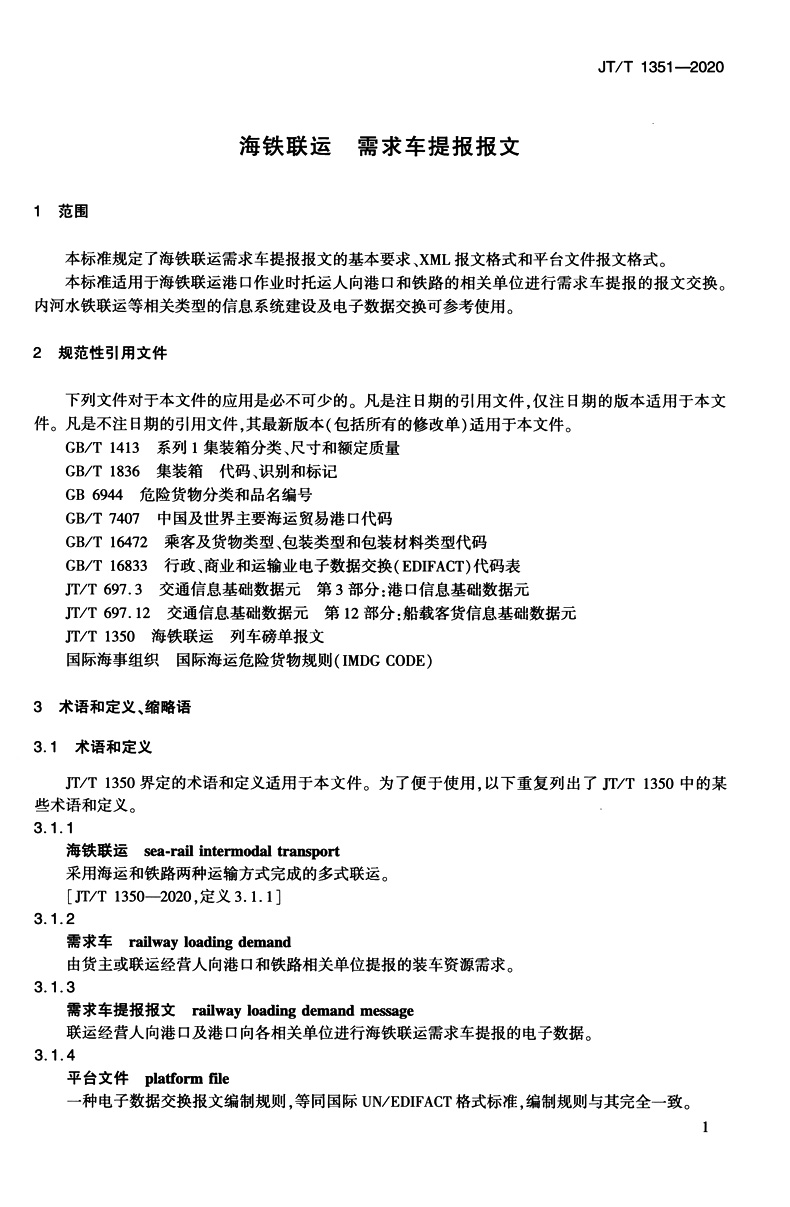 书名:海铁联运 需求车提报报文(JT/T 1351—2020)