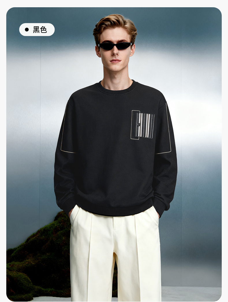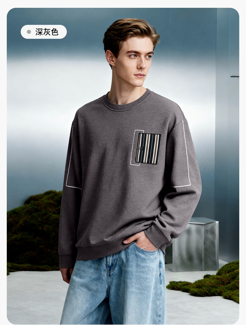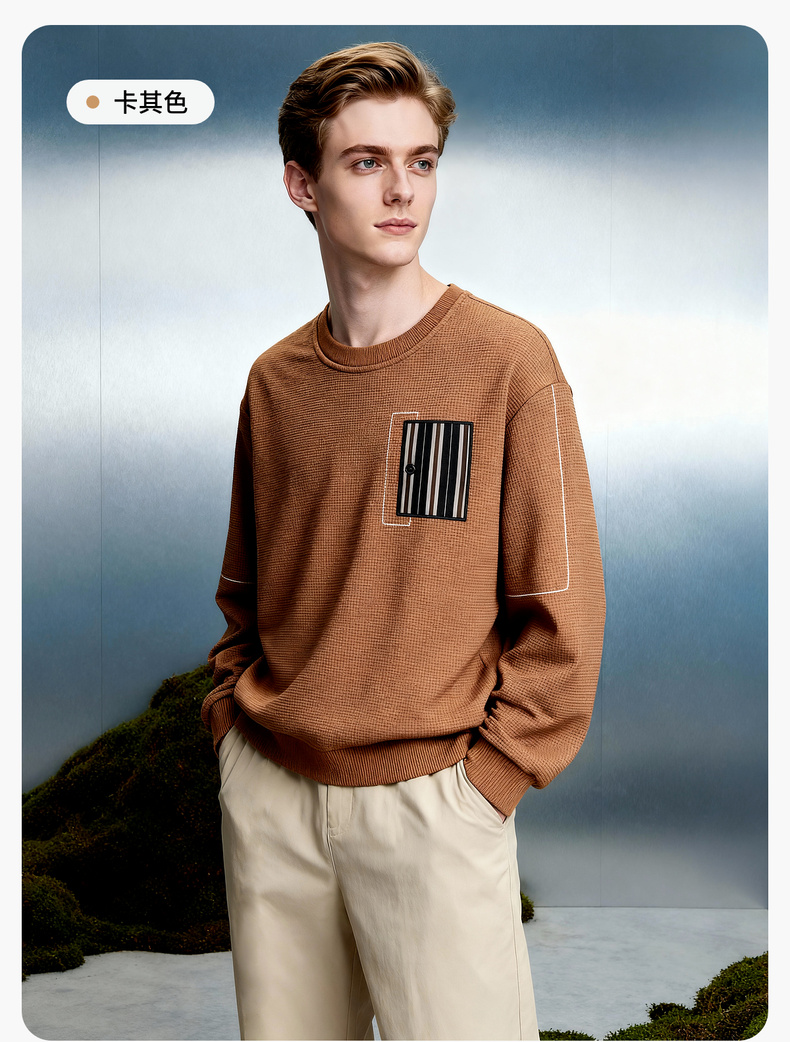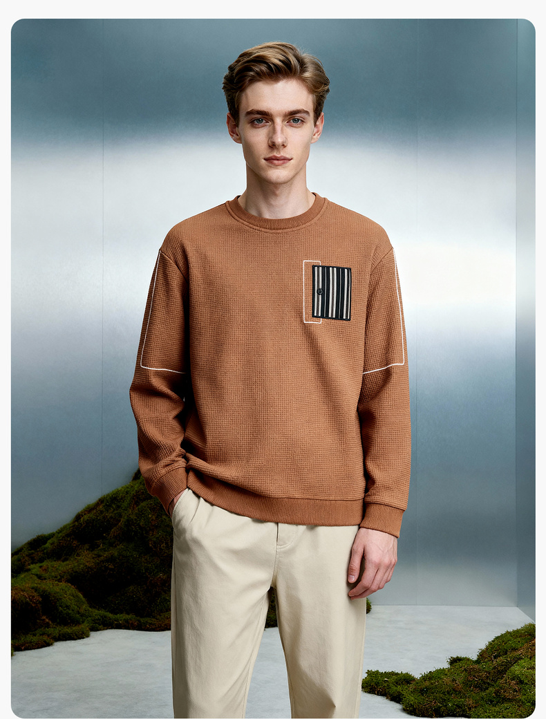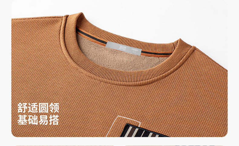华夫格加绒保暖圆领卫衣