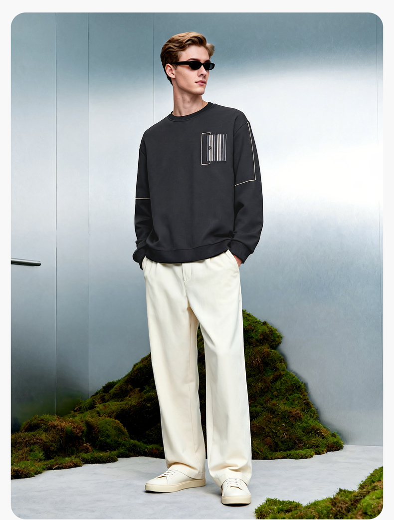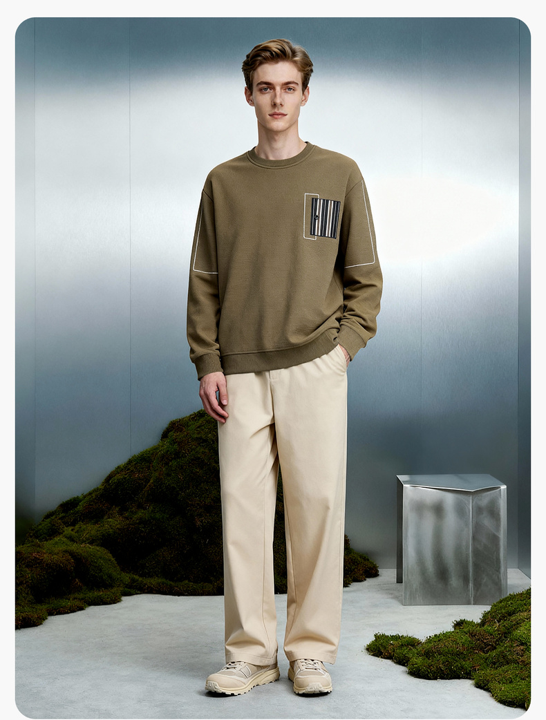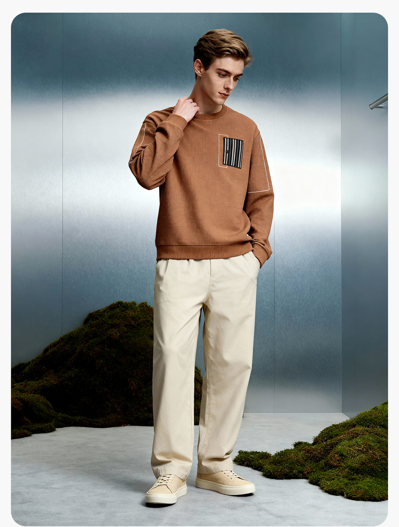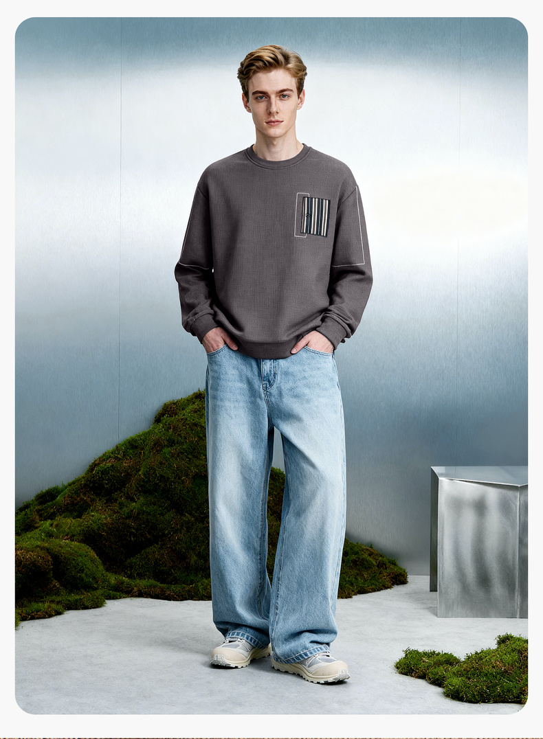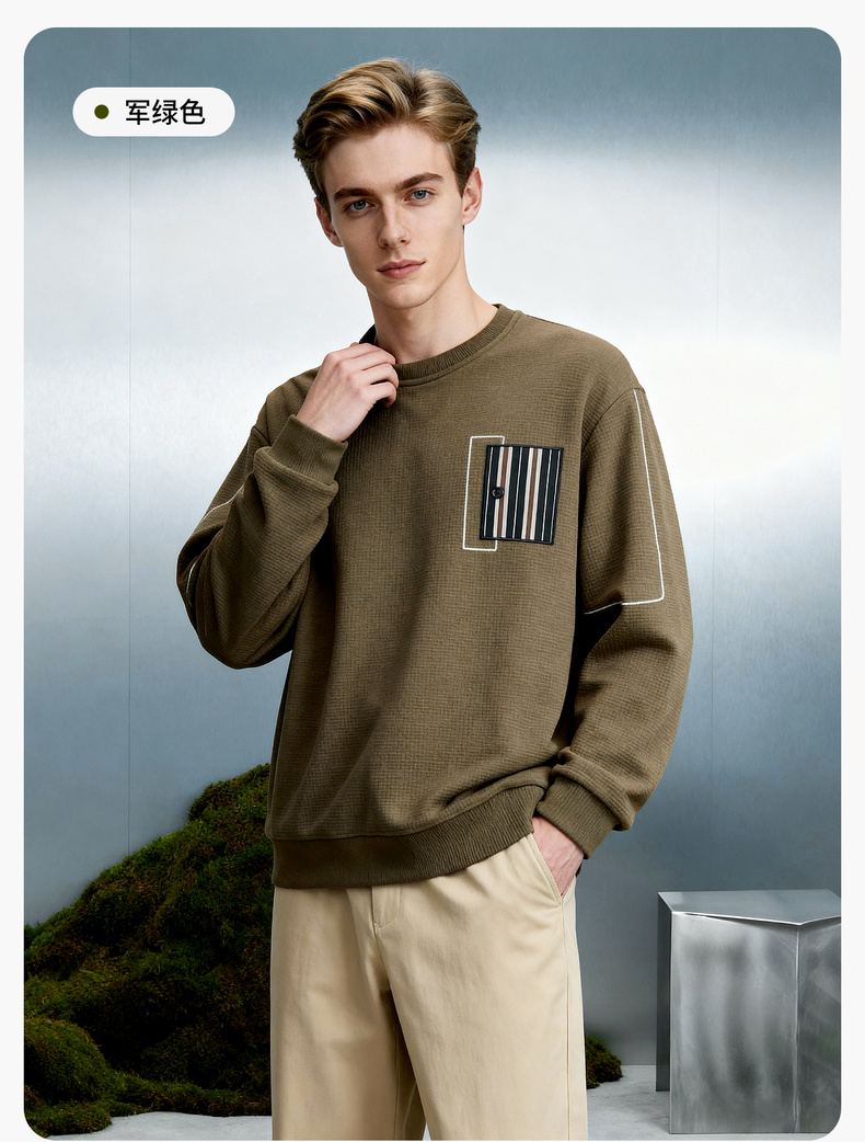 华夫格加绒保暖圆领卫衣