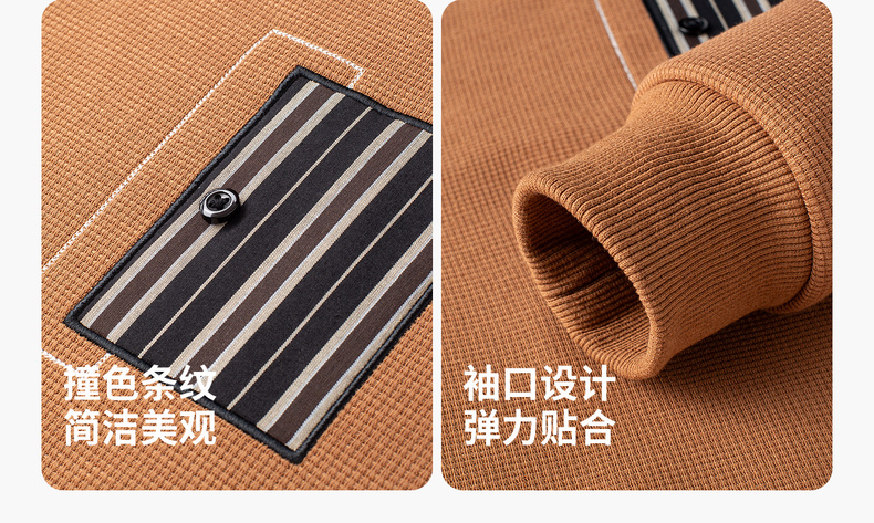 【含绵羊毛+华夫格】圣得西翻领弹力卫衣加绒加厚T恤2352978605