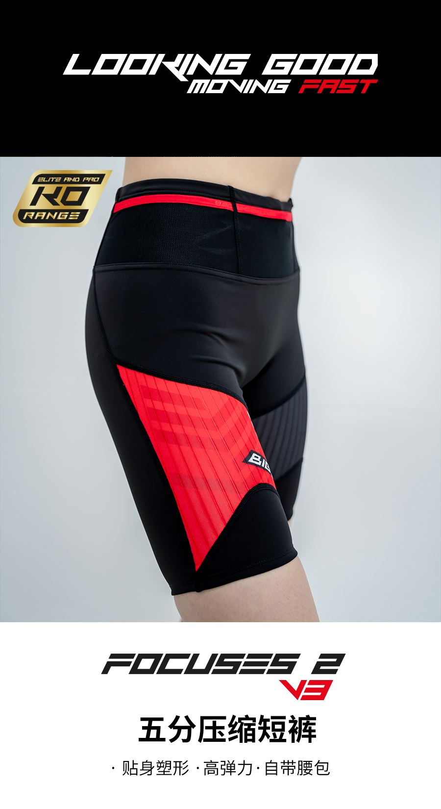BigK 大K FOCUSES2 V2压缩五分裤 城市跑步 健身训练