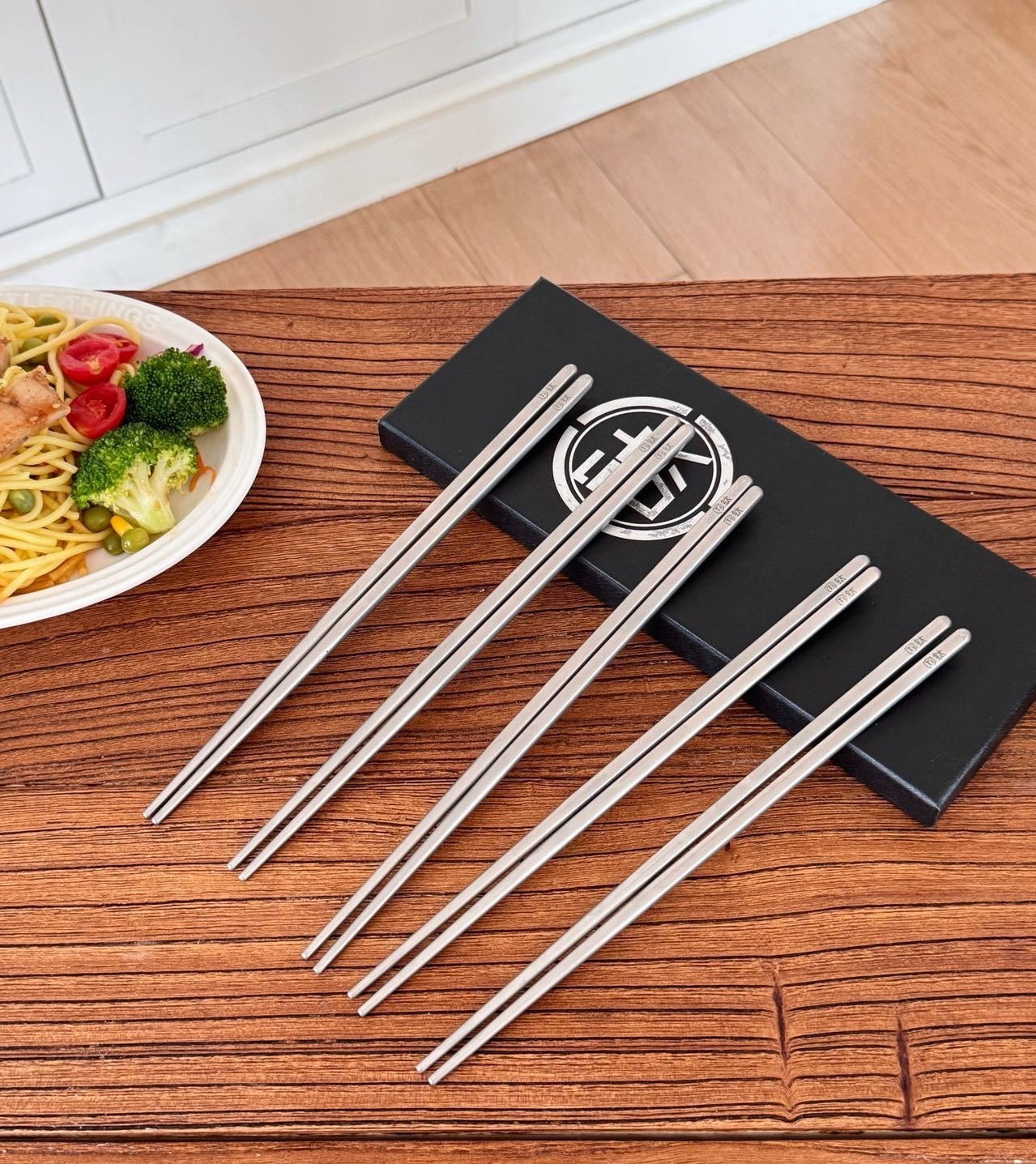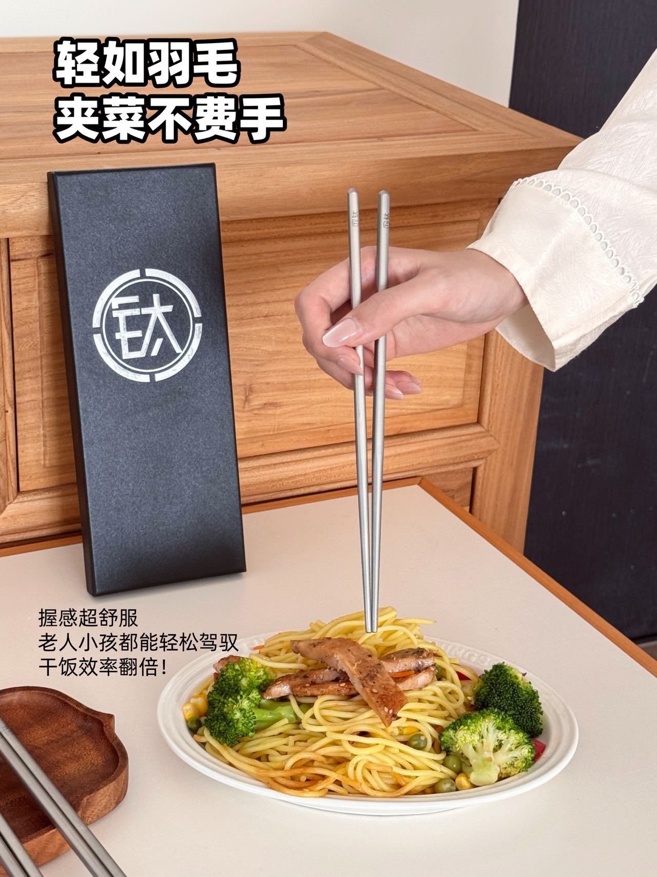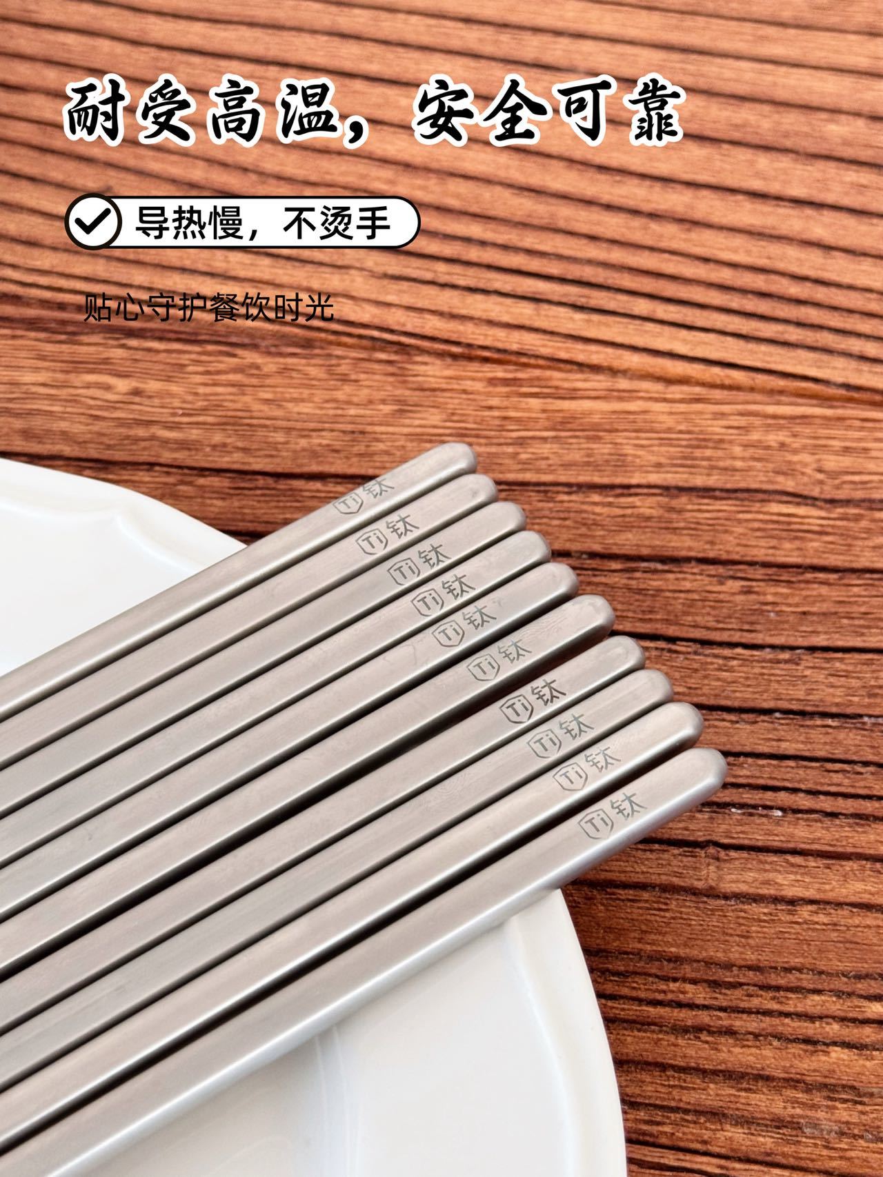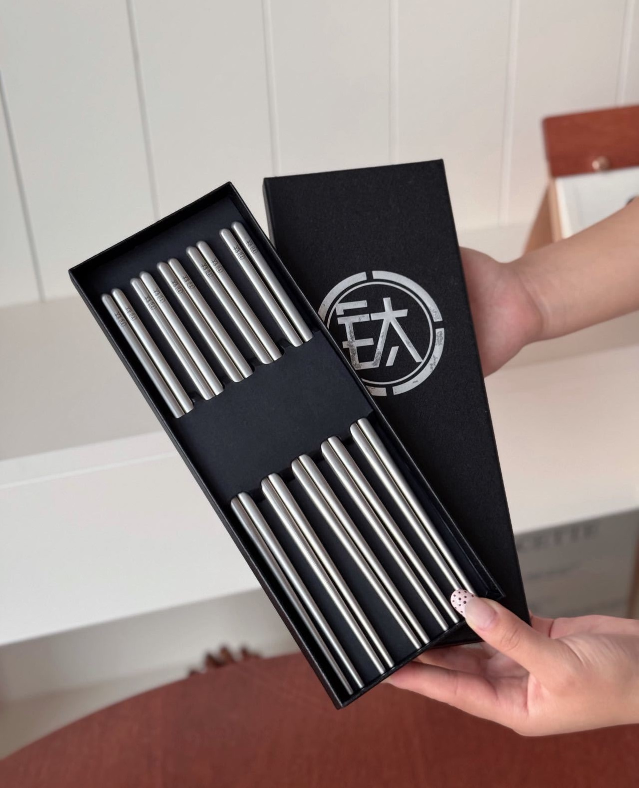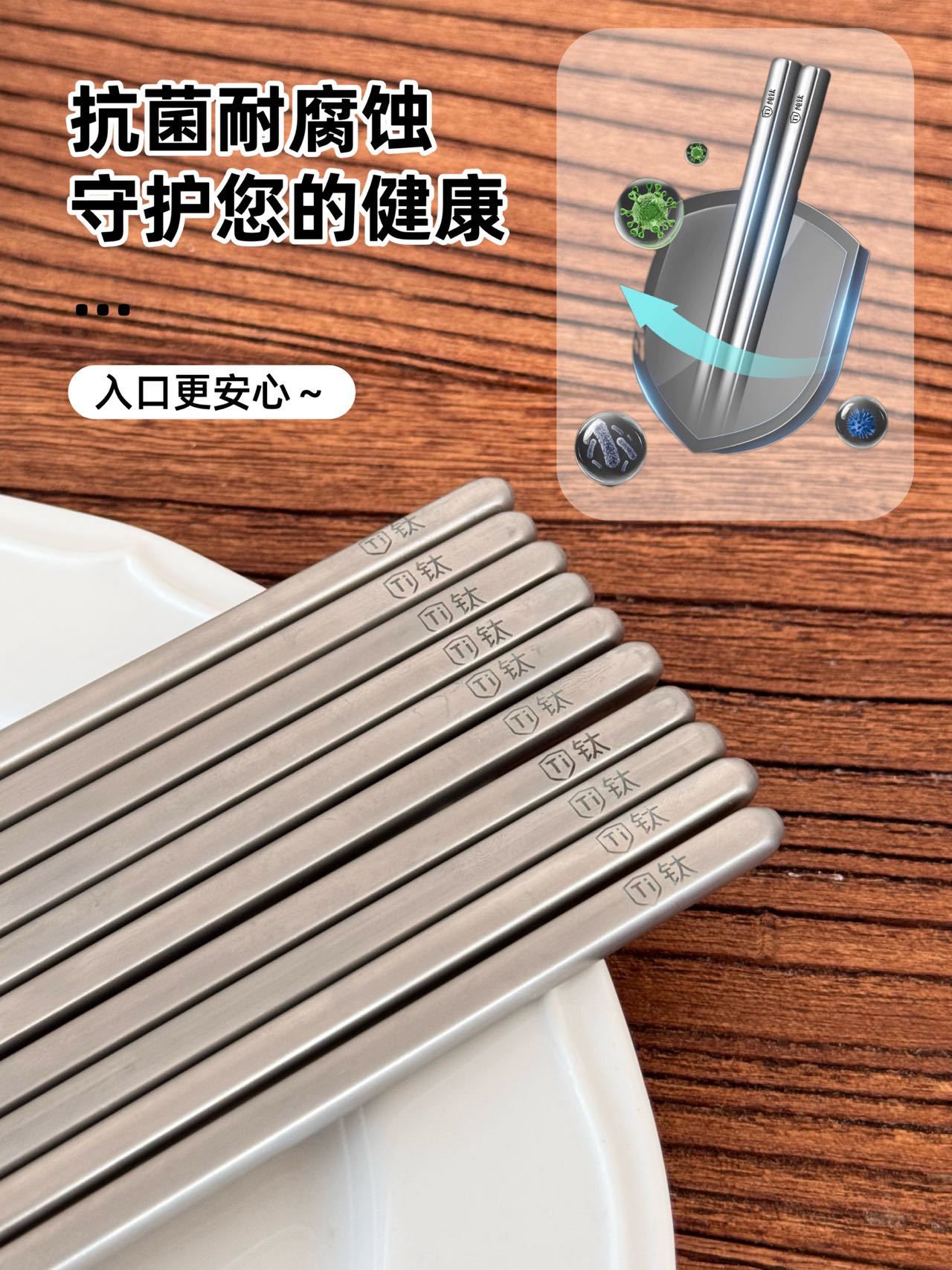 URYAU悠雅 纯钛筷子礼盒5双装 隔热防烫耐高温,耐用不易腐蚀,防滑设计夹取稳当,一体成型无缝一接,每一餐都是仪式感!