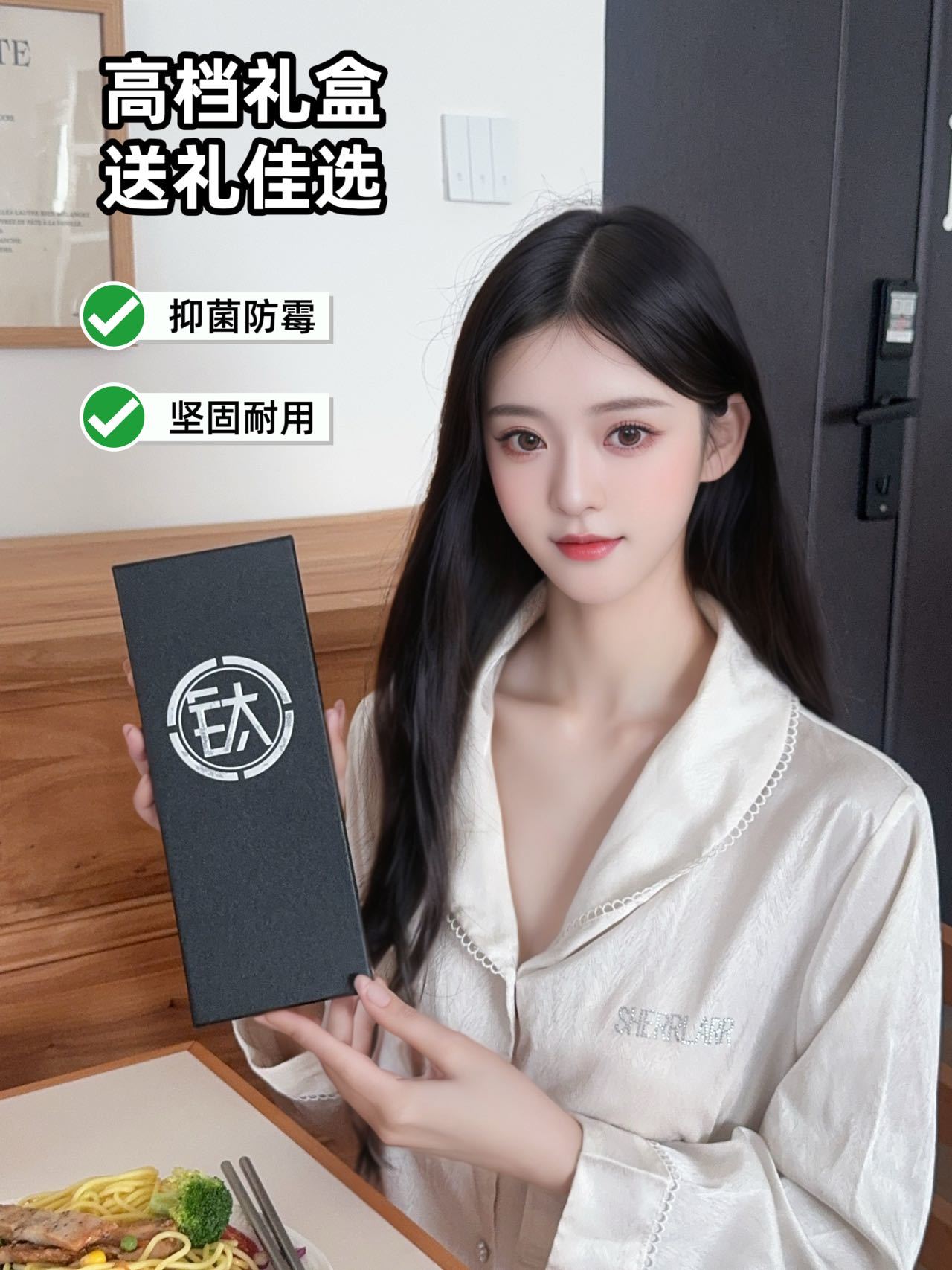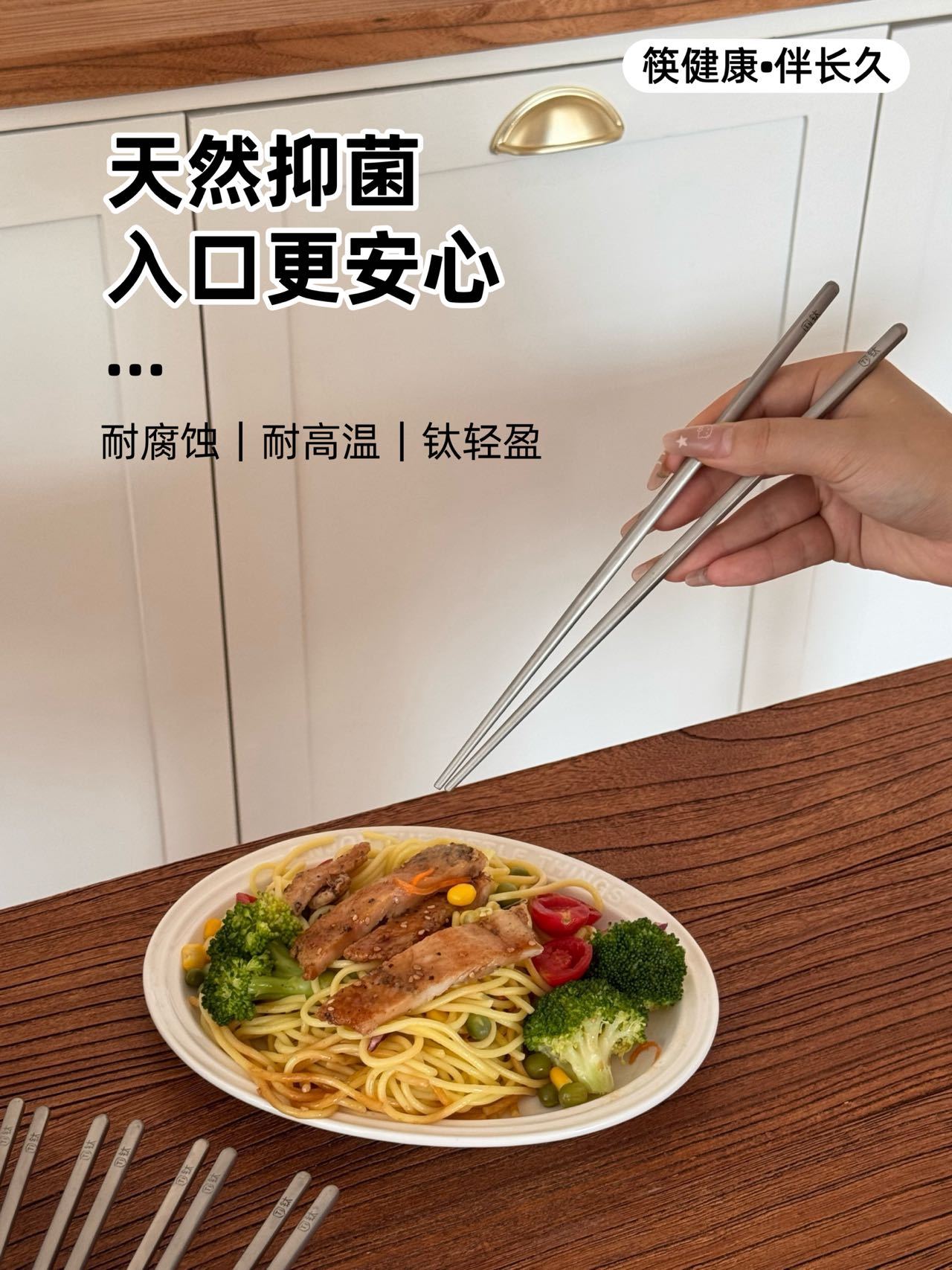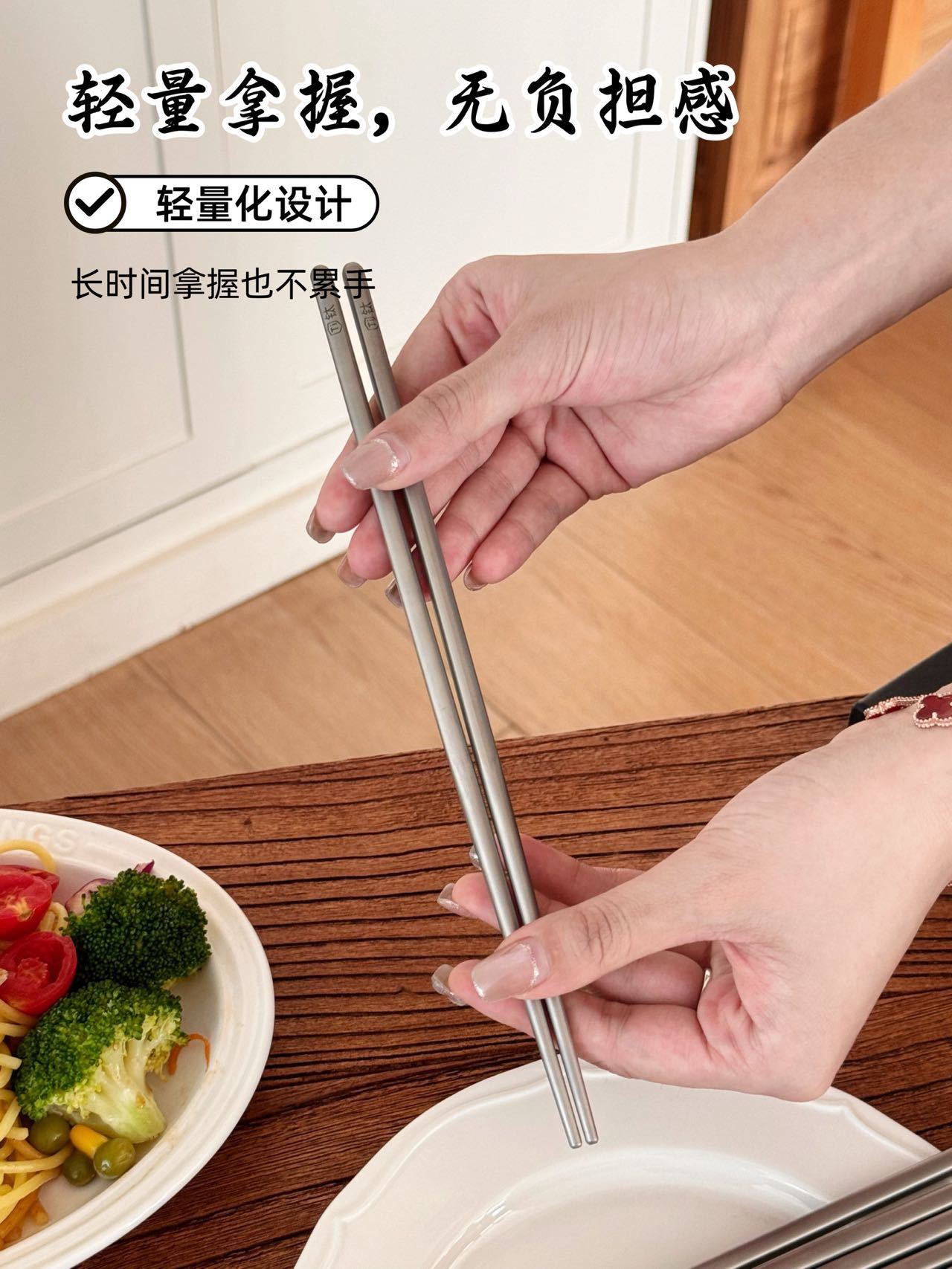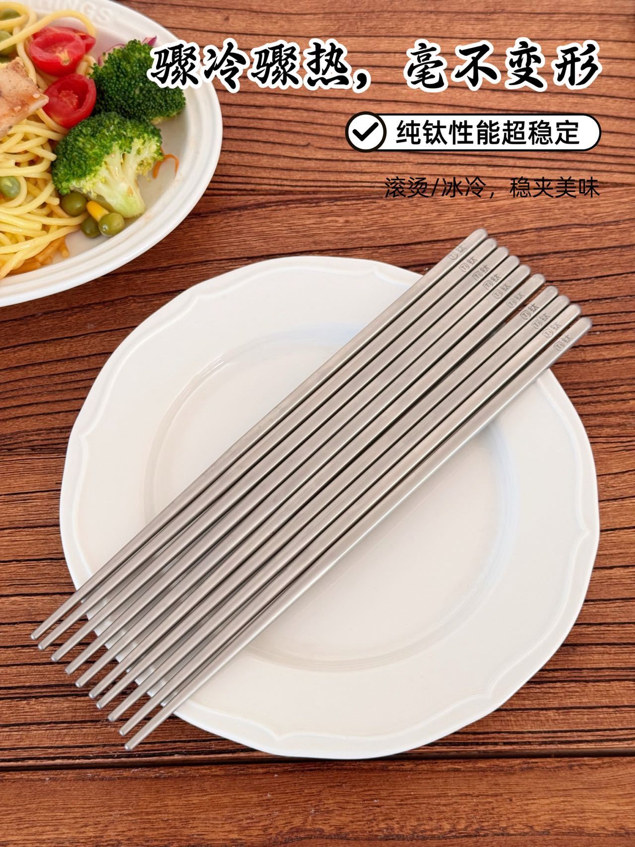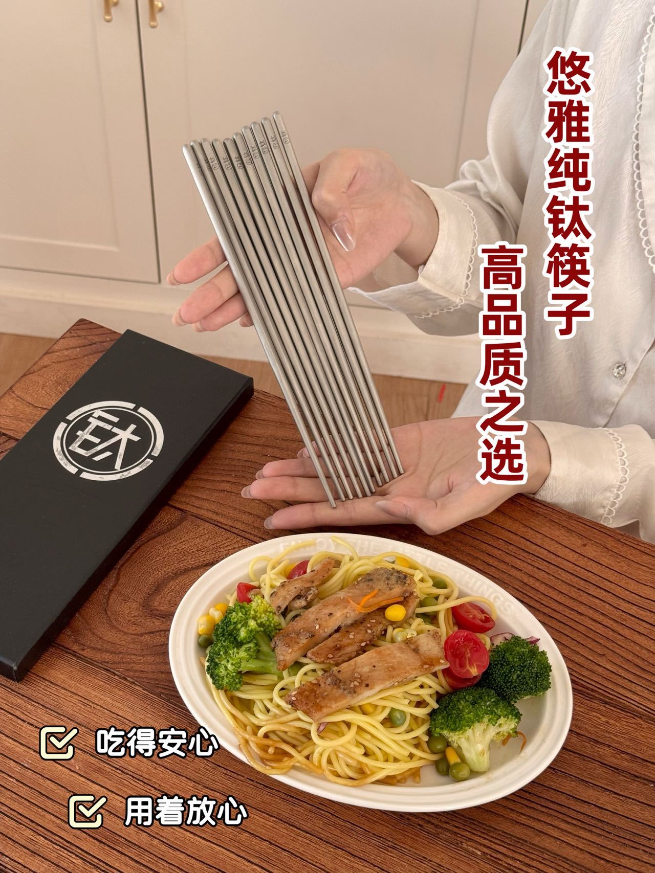 URYAU悠雅 纯钛筷子礼盒5双装 隔热防烫耐高温,耐用不易腐蚀,防滑设计夹取稳当,一体成型无缝一接,每一餐都是仪式感!