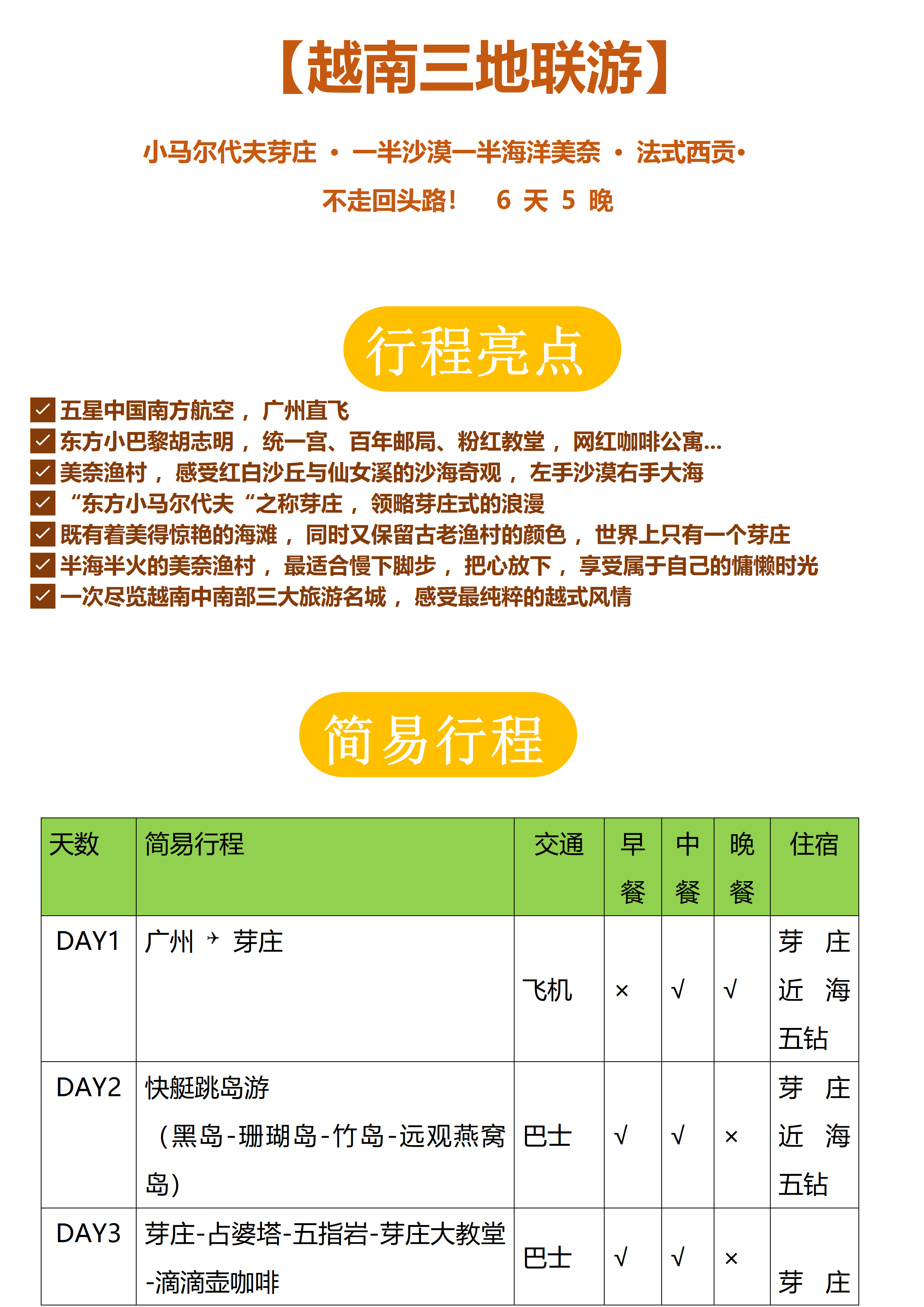 【越南三地联游】芽庄+美奈+胡志明纯玩双飞6天