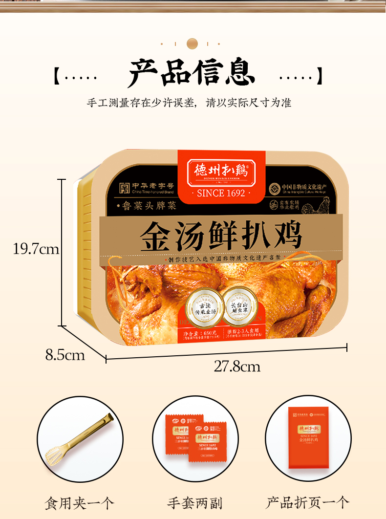 【年货吉礼】德州扒鸡金汤鲜扒鸡650g-保质期12个月 不接受7天无理由和拒收