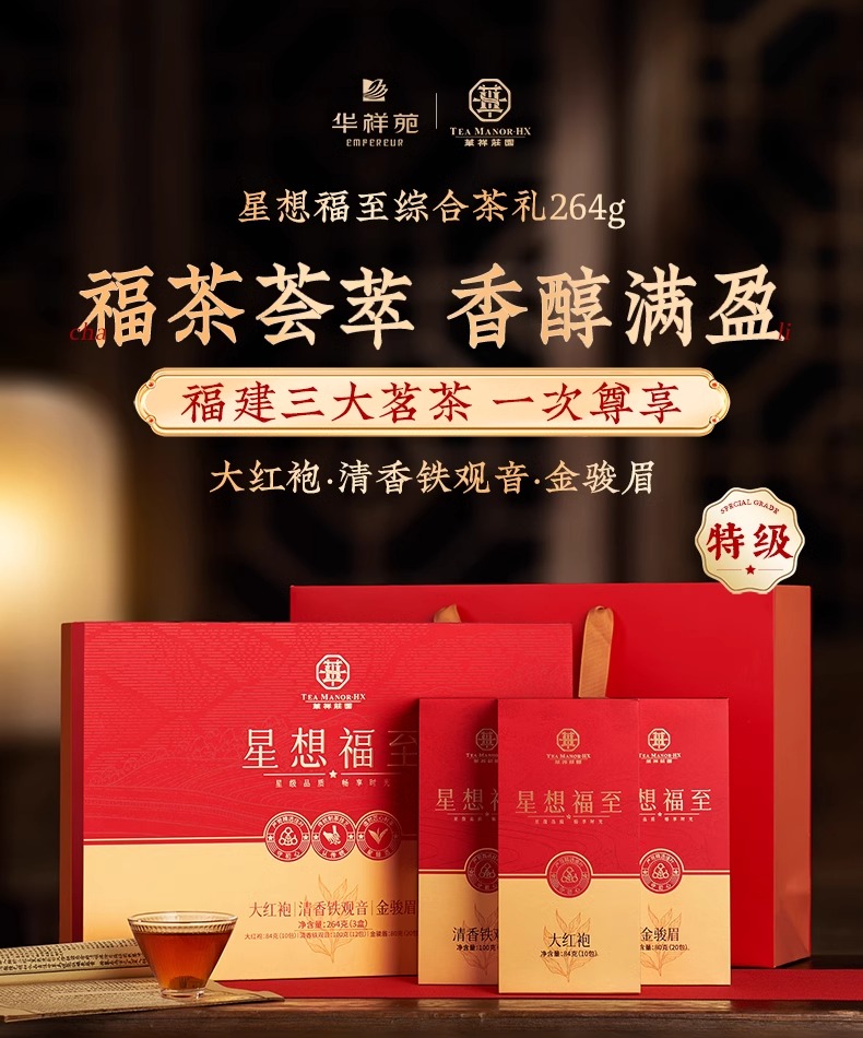 华祥苑肉桂 星想福至特级年货送礼礼盒 金骏眉肉桂铁观音