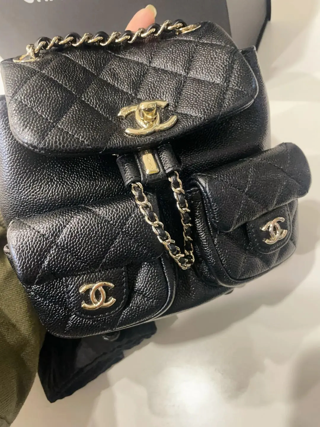 Chanel duma 小青蛙 小号 黑金 荔枝牛 双肩包
