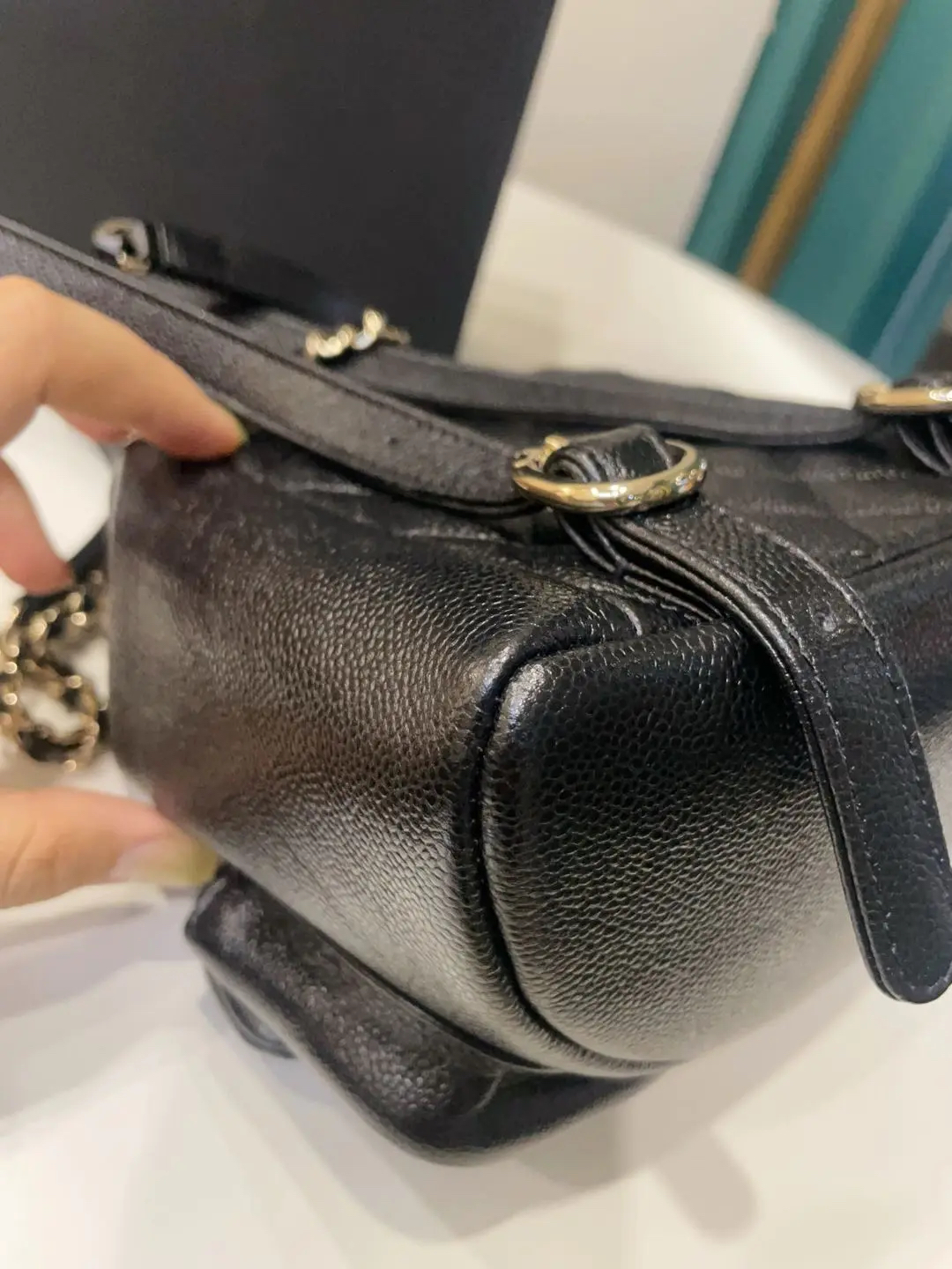 【商品详情】正品二手 Chanel duma 小青蛙 小号 黑金 荔枝牛 双肩包👏🏻99新 钢标款 15x16。可爱小香风。