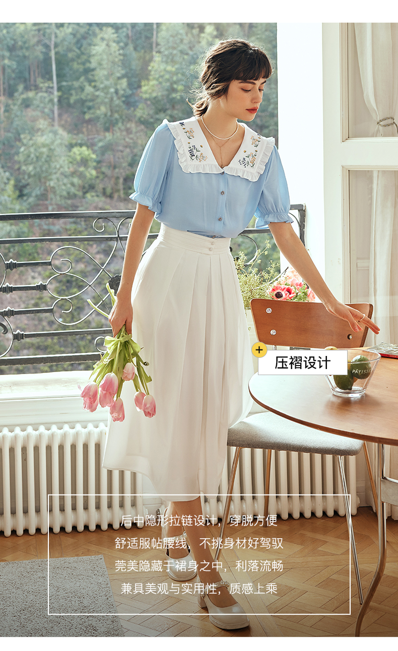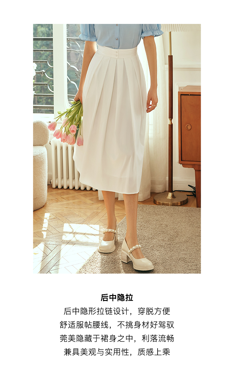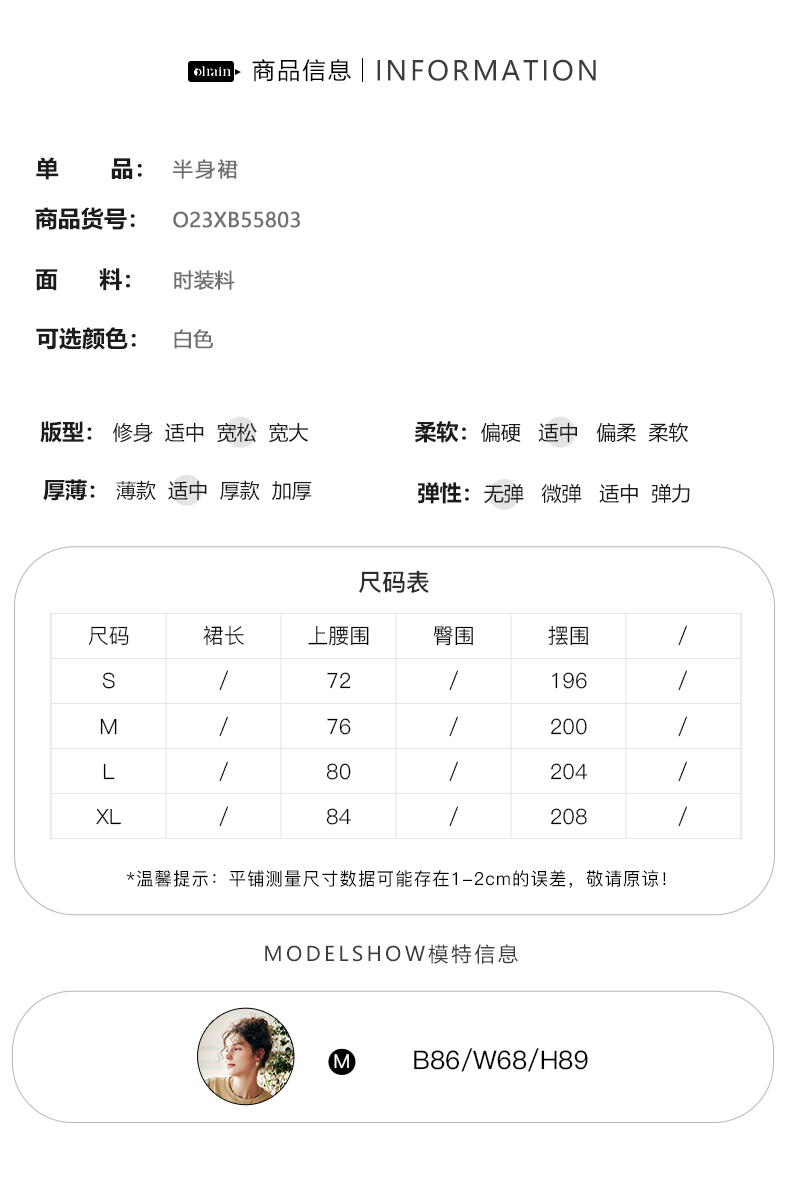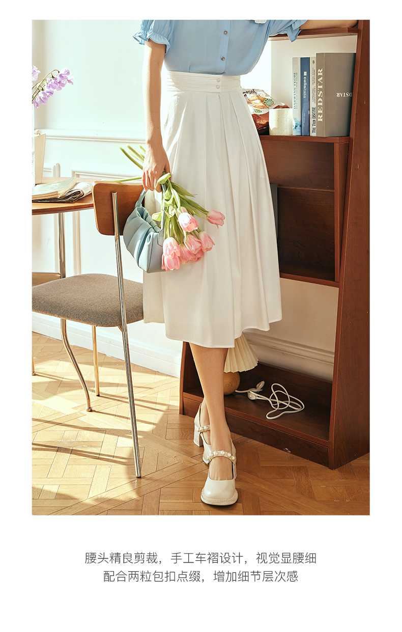 OLrain欧芮儿法式白色半身裙女夏季2023年新款高腰时尚中长款伞裙