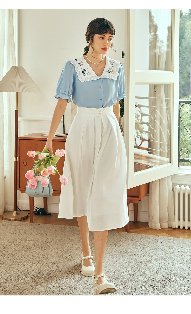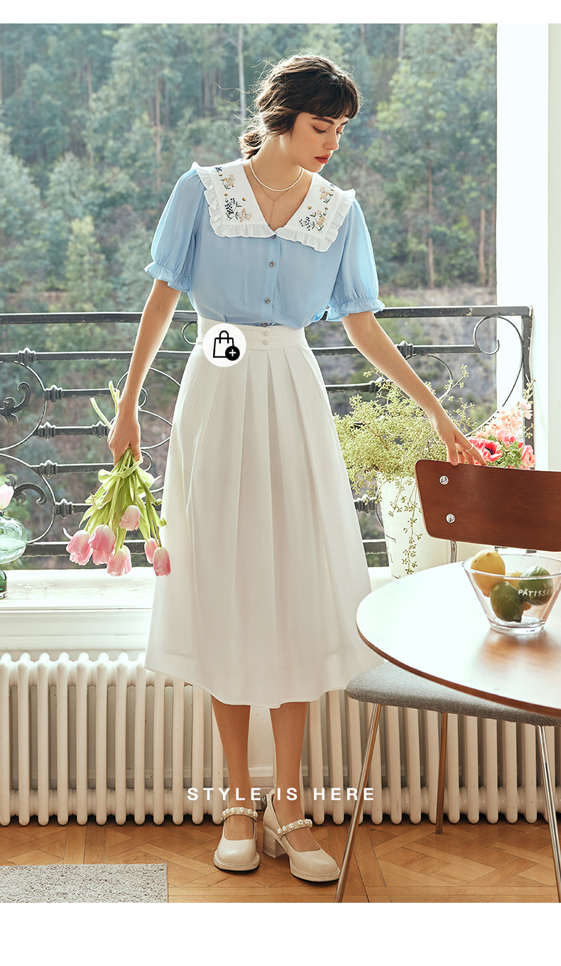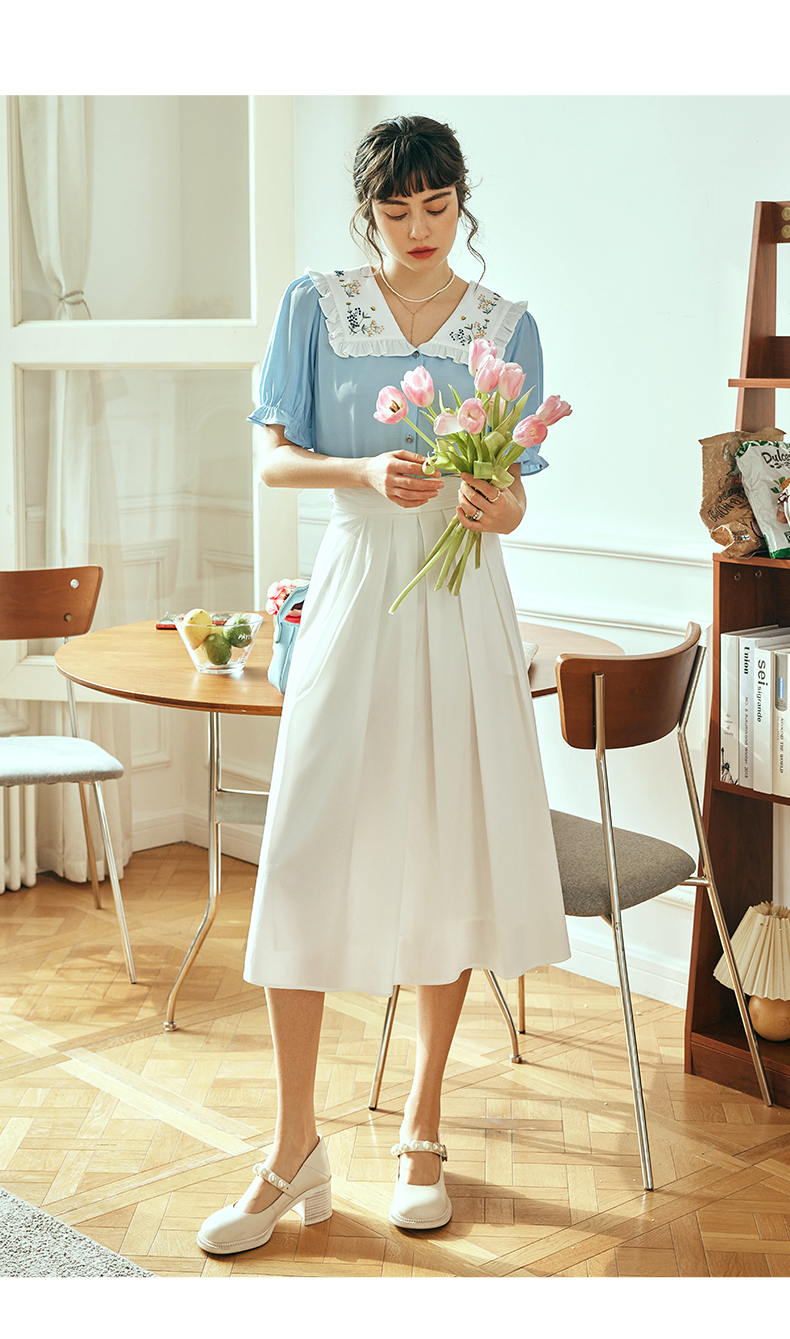 OLrain欧芮儿法式白色半身裙女夏季2023年新款高腰时尚中长款伞裙