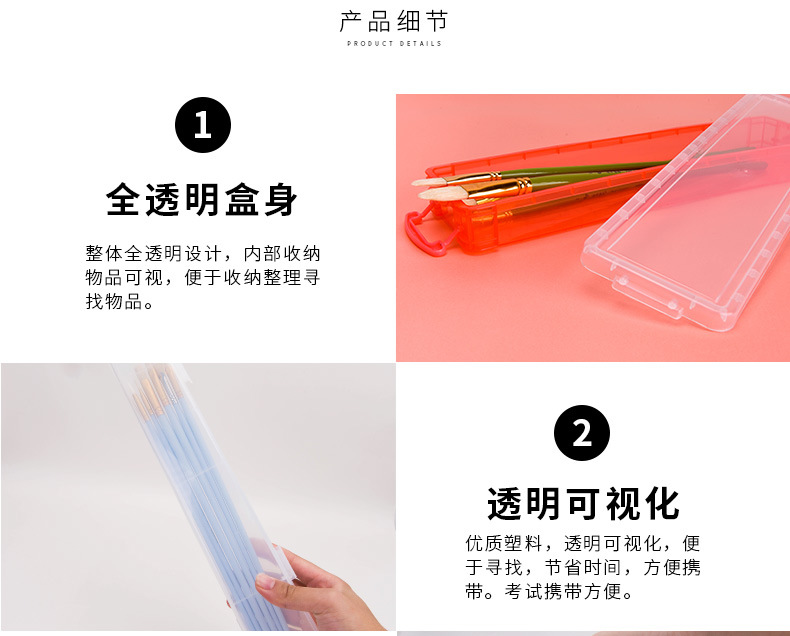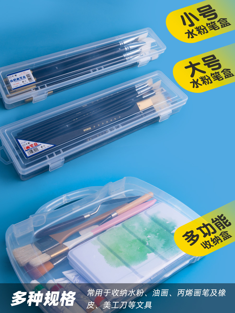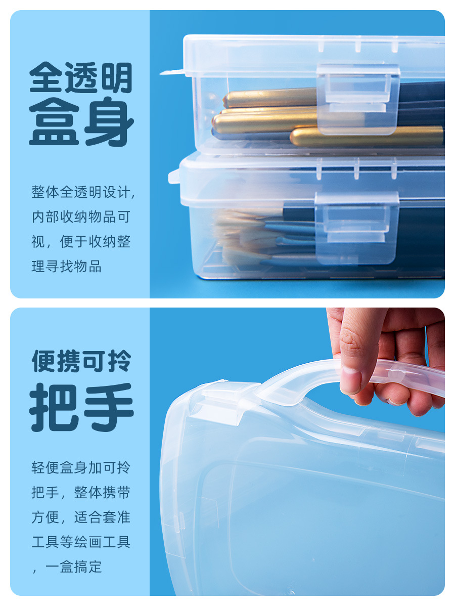 【大容量画笔收纳盒】加厚透明多功能收纳盒/铅笔盒 大号美术用品文具画笔手提笔盒