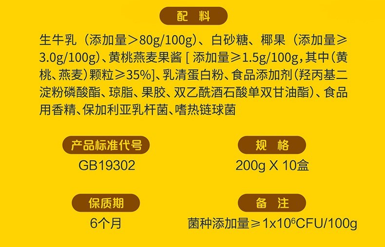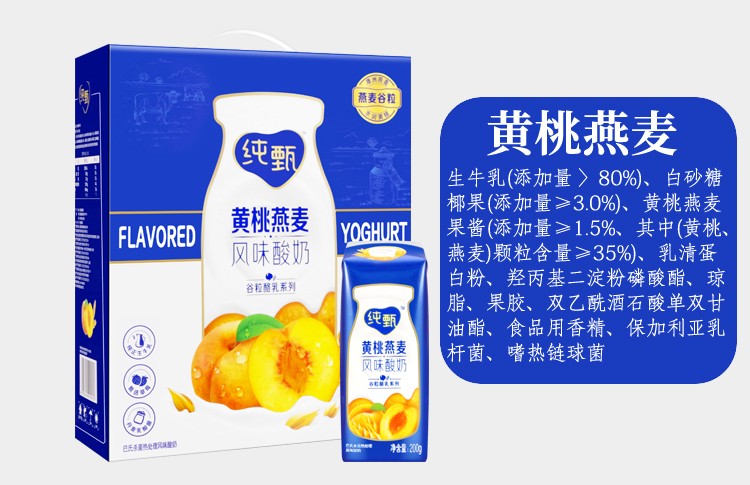 纯甄黄桃果粒风味酸奶康美笑脸包200gX10包