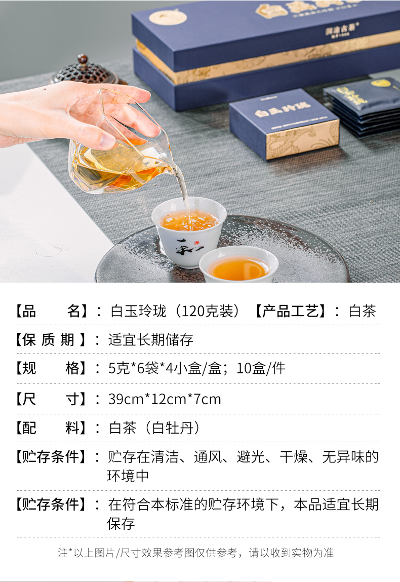 澜沧古茶白玉玲珑白牡丹白茶5g小饼单泡24袋礼盒装120g(5g*6袋*4小盒/盒)